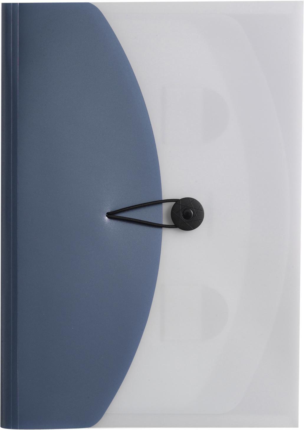 Pasta de arquivo em polipropileno (aprox. A4), com 4 compartimentos.