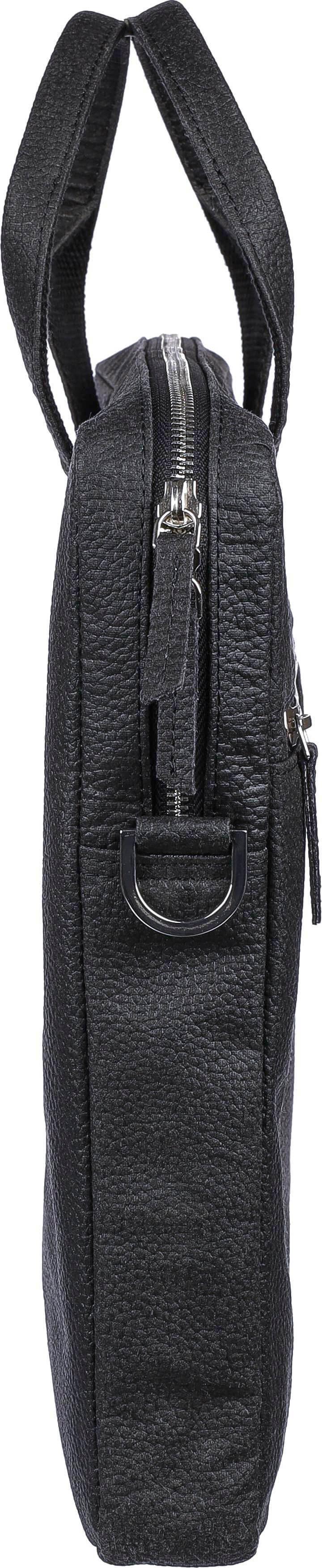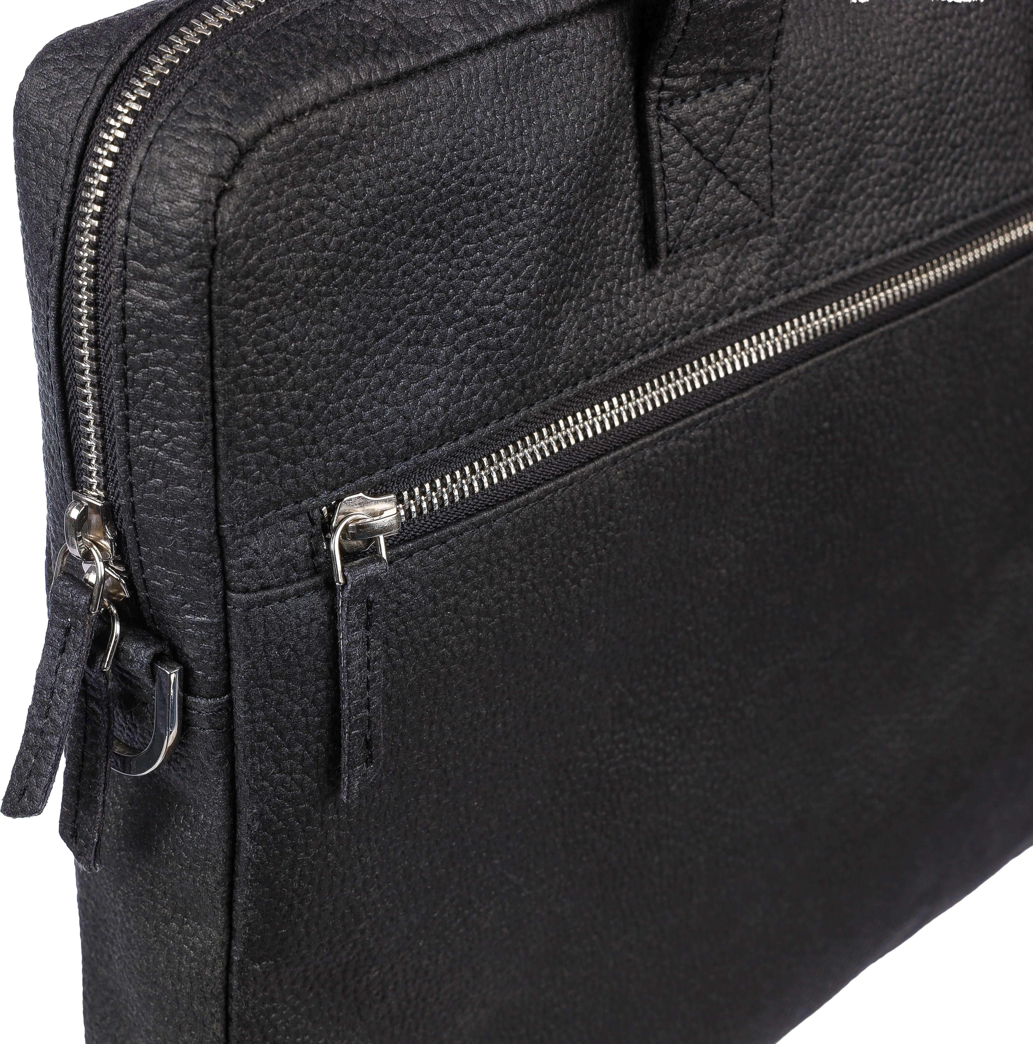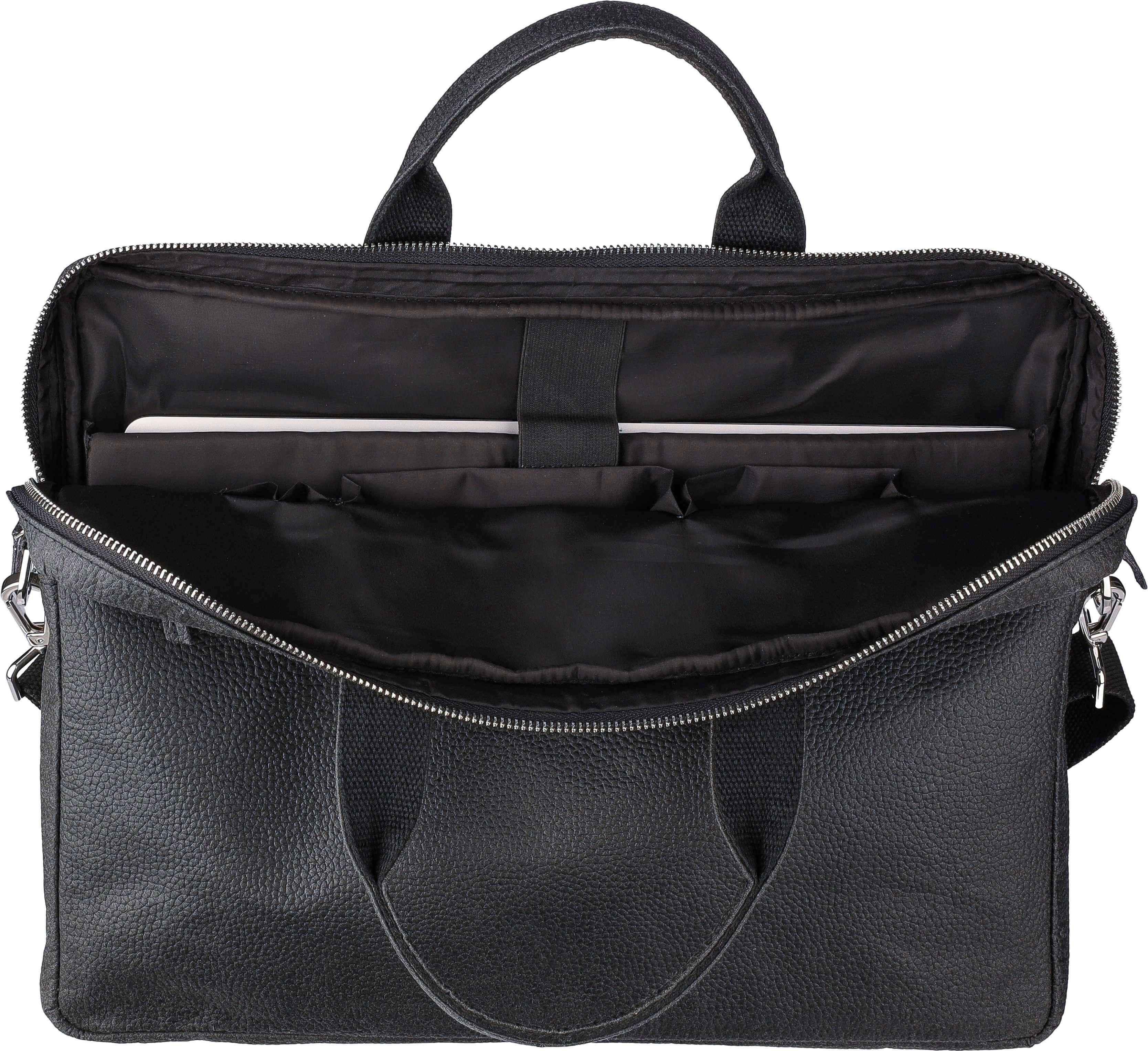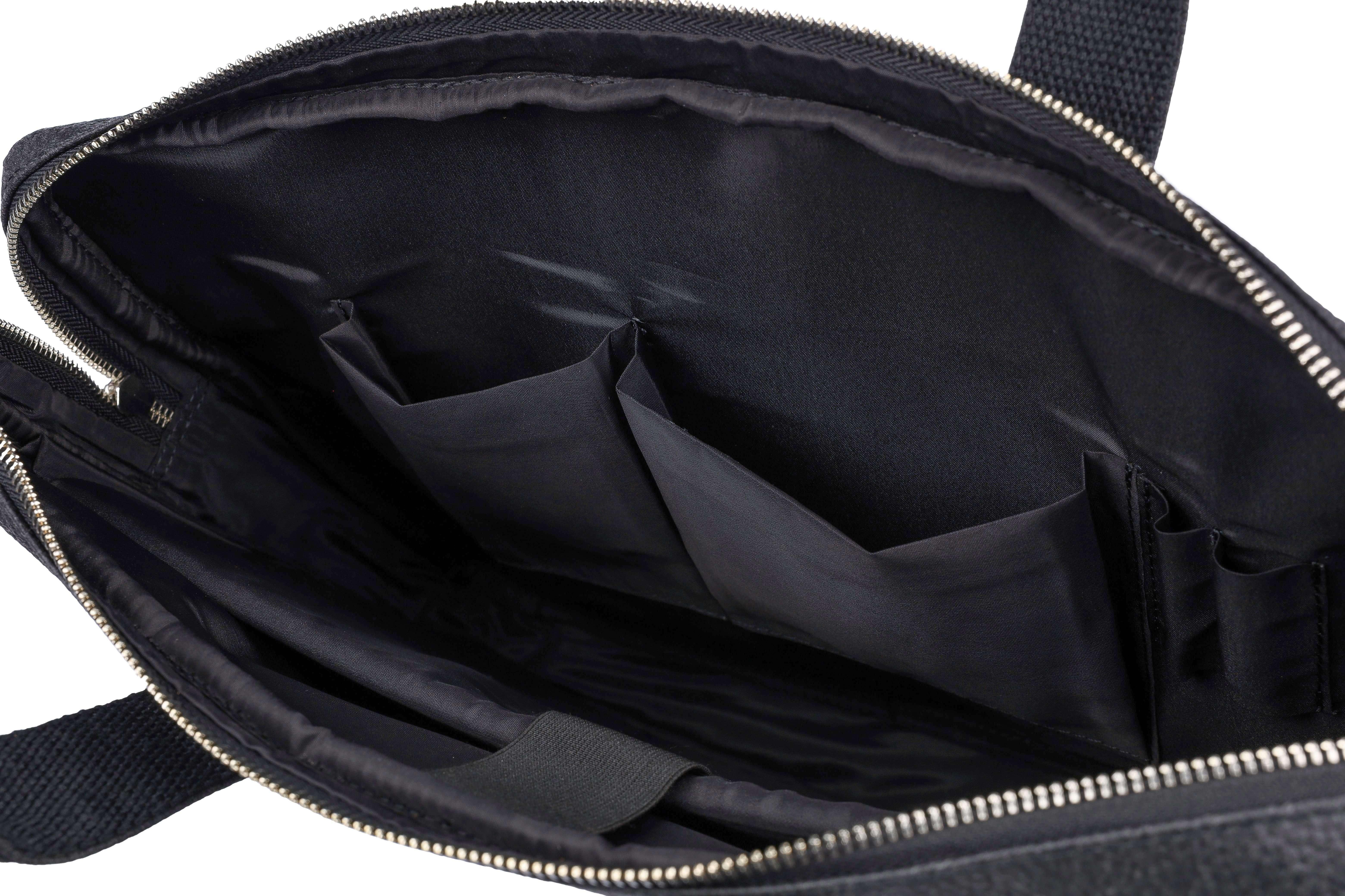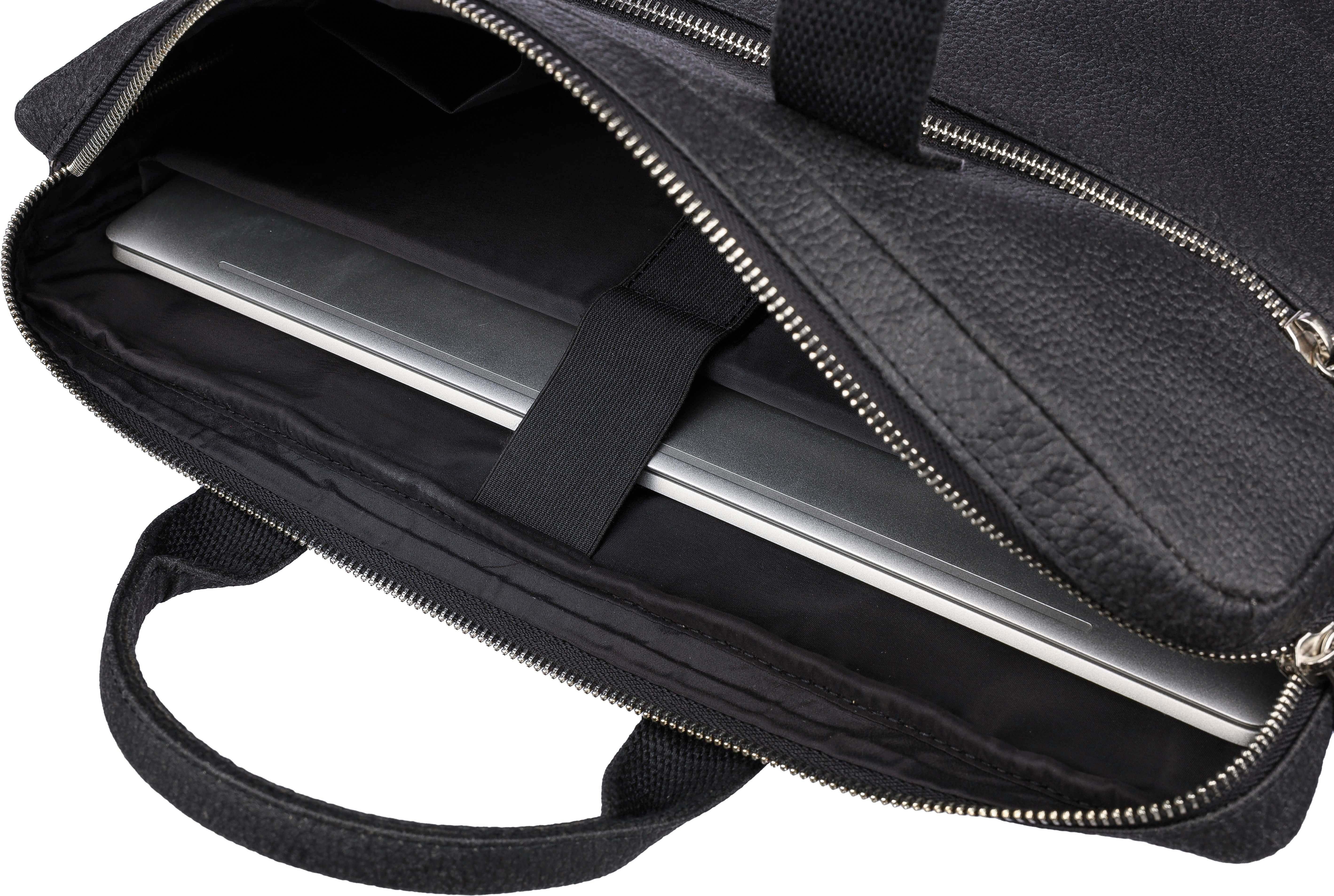 Pasta para portátil (15 polegadas) em pele de tomate com compartimentos com fecho de correr na frente e na parte superior e um bolso almofadado para portátil com fecho de velcro. Vários bolsos mais pequenos no interior. Com alças de ombro ajustáveis. Composição do material: 50% algodão, 30% tomate, 20% biopolímero.