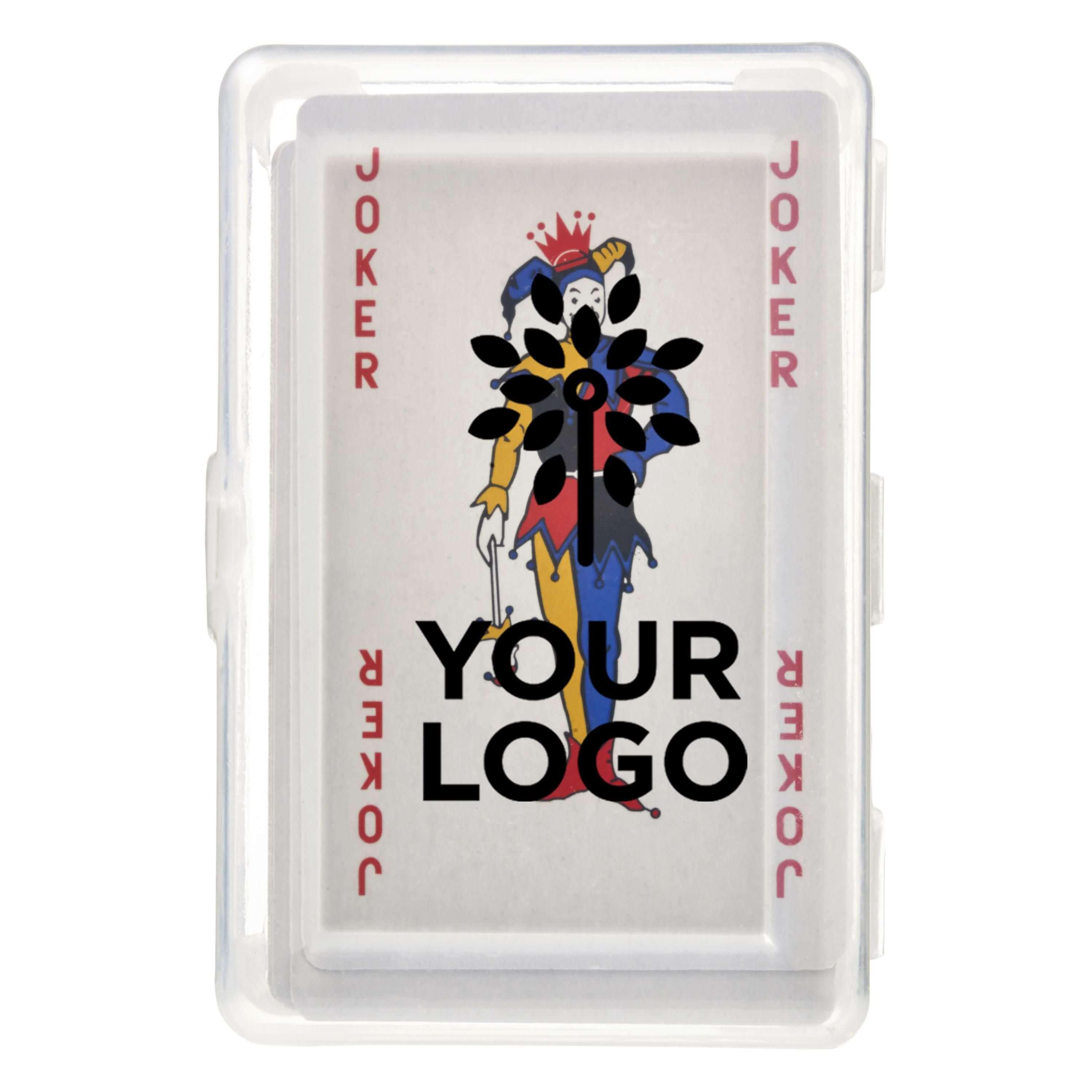 Baralho clássico de cartas em caixa PET transparente. 54 cartas no total.