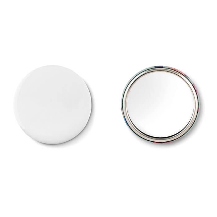 Pin de espelho e metal, com papel embutido. Ø5,8 CM. Quantidade mínima de encomenda 25 unidades. Para pedidos sem impressão, o produto se entrega desmontado.