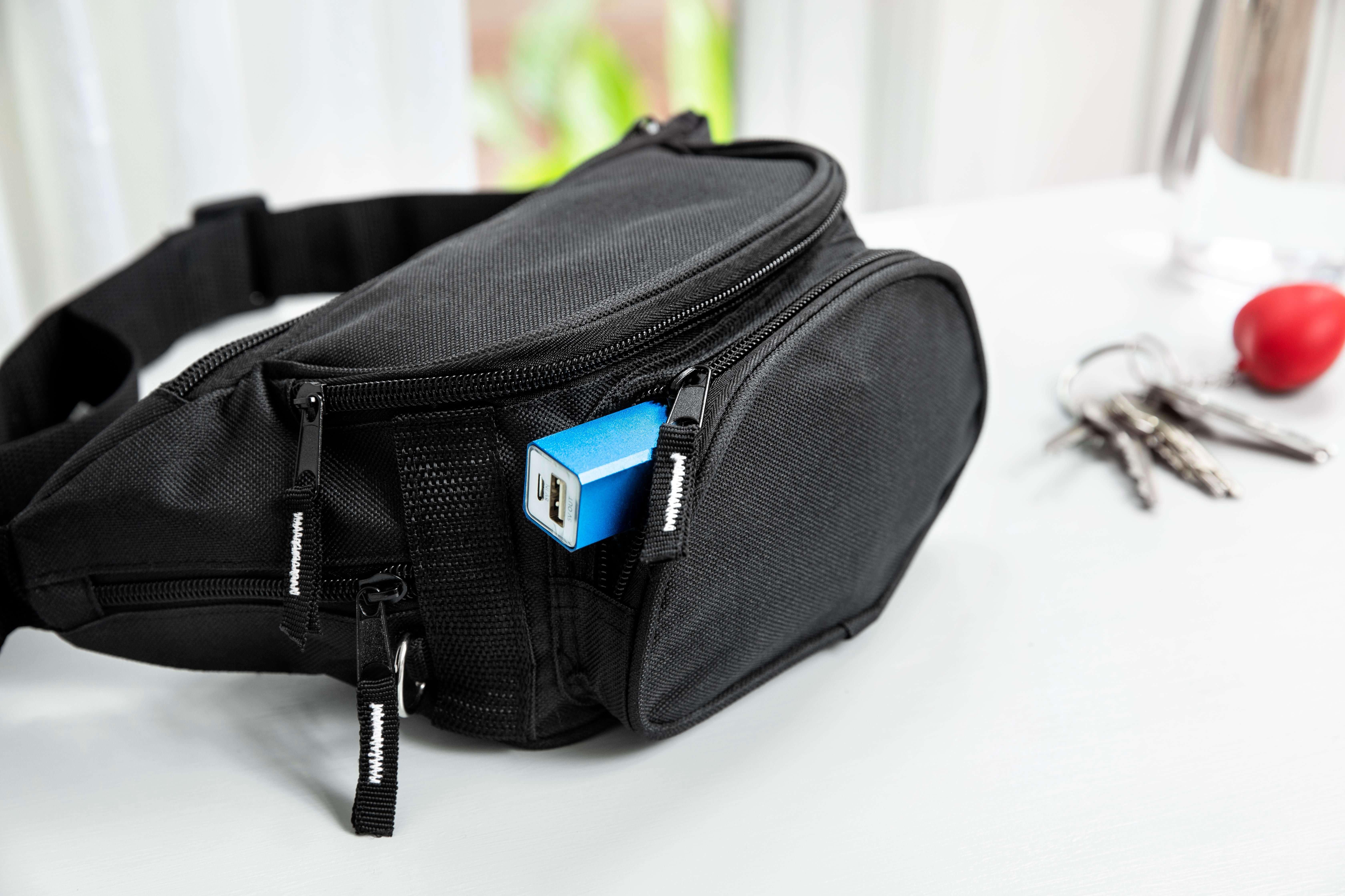 Pochete completa de poliéster 600D com 5 compartimentos de fecho de correr.