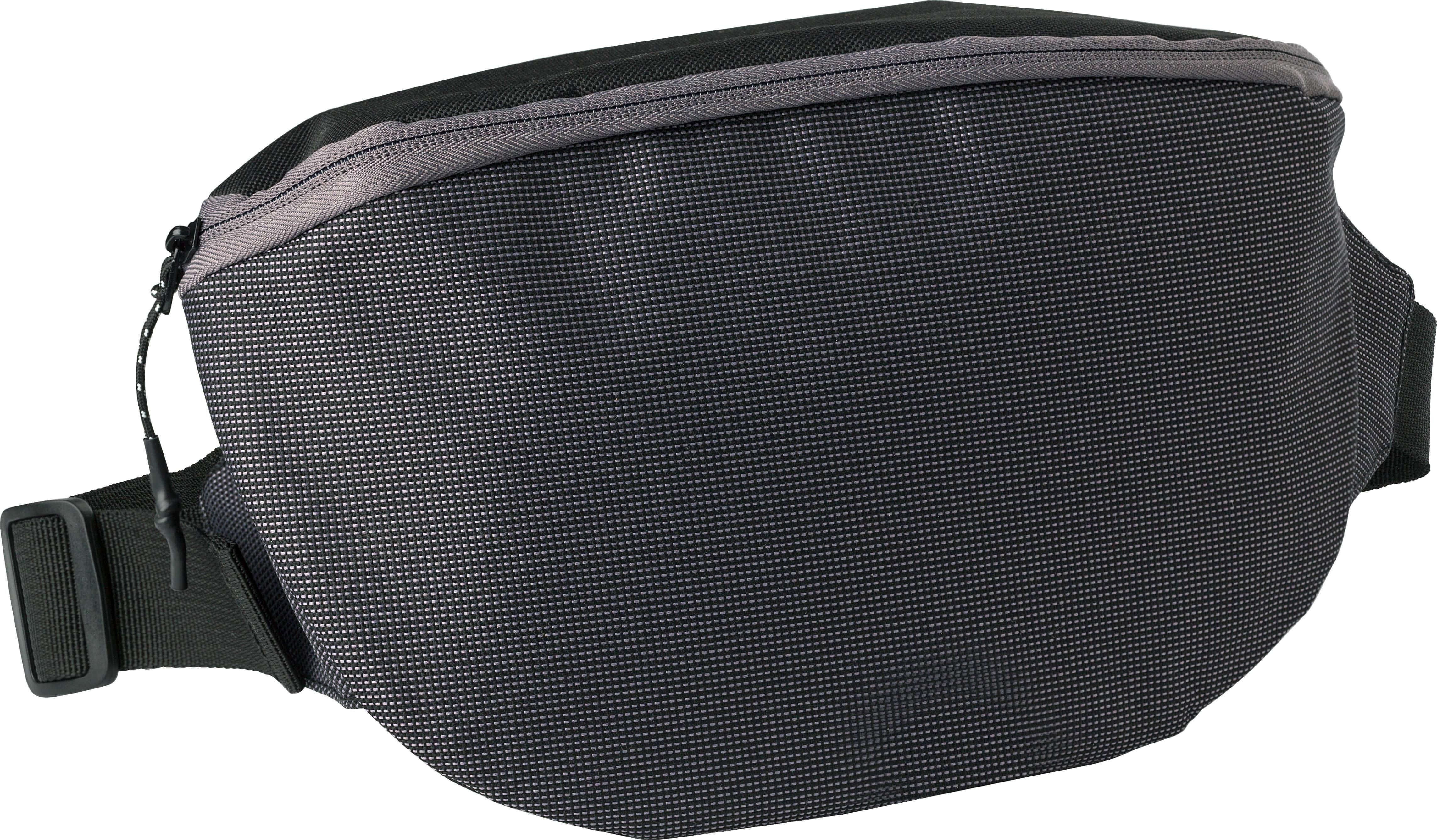 Pochete em tecido ripstop 600D com fecho de correr e dois compartimentos. Alça ajustável e fecho de fivela.