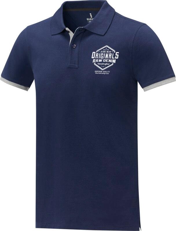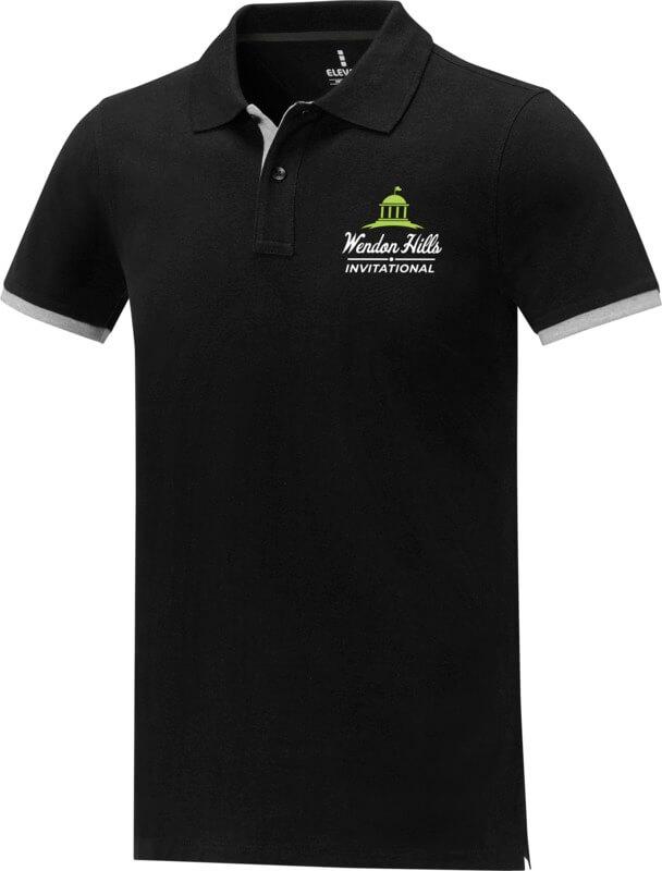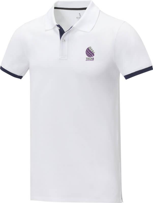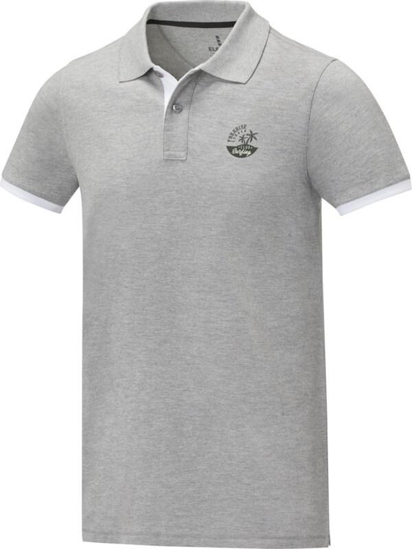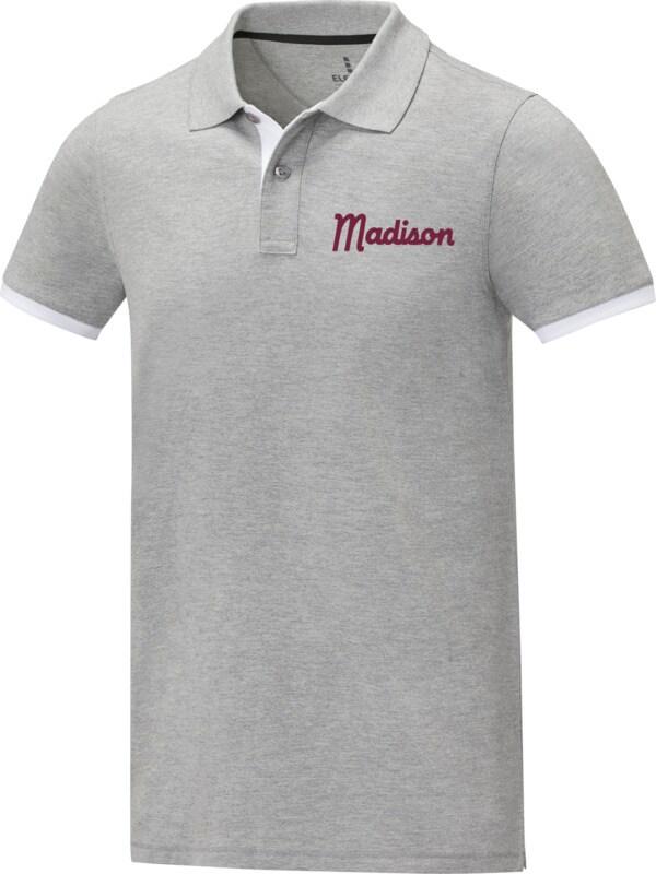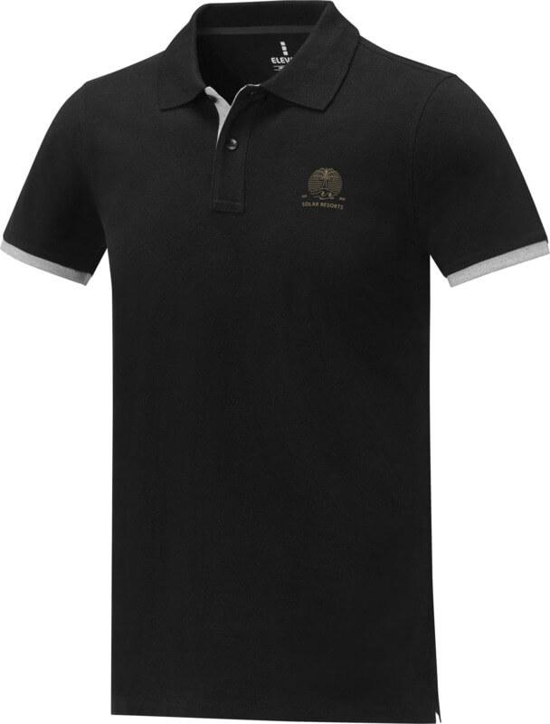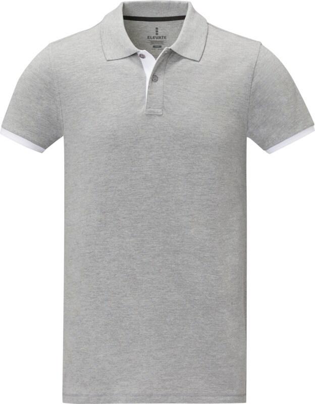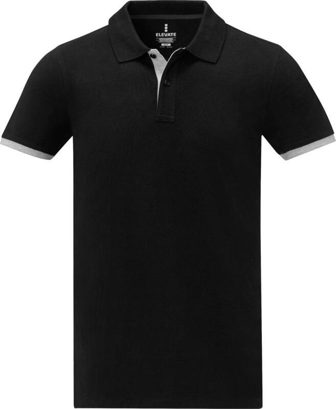 O polo Morgan de manga curta duotone para homem é uma opção elegante e confortável para qualquer ambiente casual ou de negócios. Fabricado com um tecido de algodão piqué de 200 g/m2, este pólo é durável e respirável. Com uma gola de malha plana e punhos canelados com pormenores em cor contrastante, este polo oferece um toque moderno a um design clássico. A carcela de dois botões e os pormenores de pesponto acrescentam um toque extra de sofisticação, e a fita de cetim no pescoço e a etiqueta principal de transferência térmica proporcionam conforto e facilidade de utilização.
