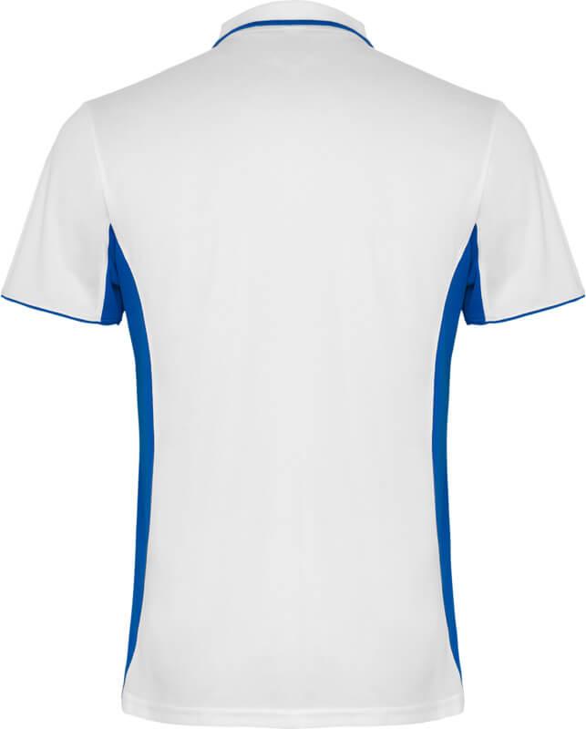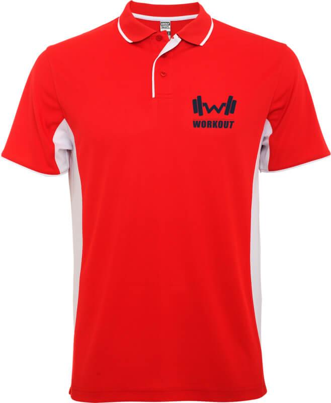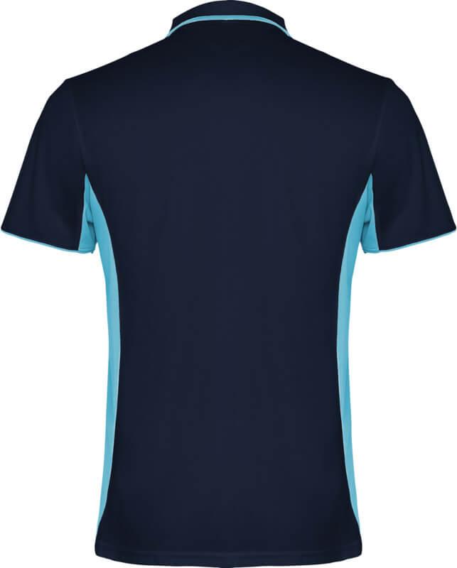 Combinação de duas cores. Gola com botões, costuras forradas e carcela em cor contrastante. Tecido técnico e respirável de fácil lavagem e secagem. Etiqueta removível.