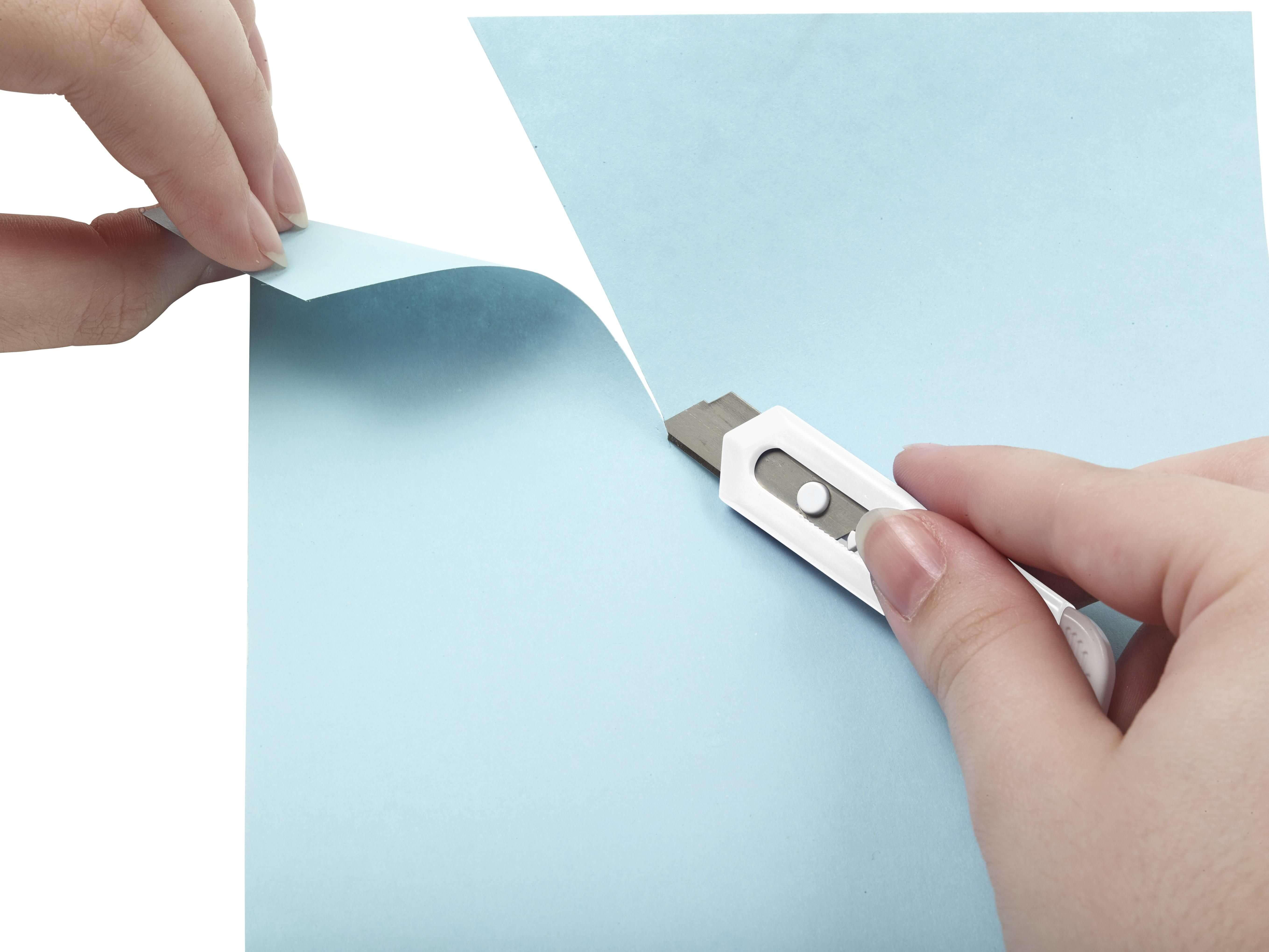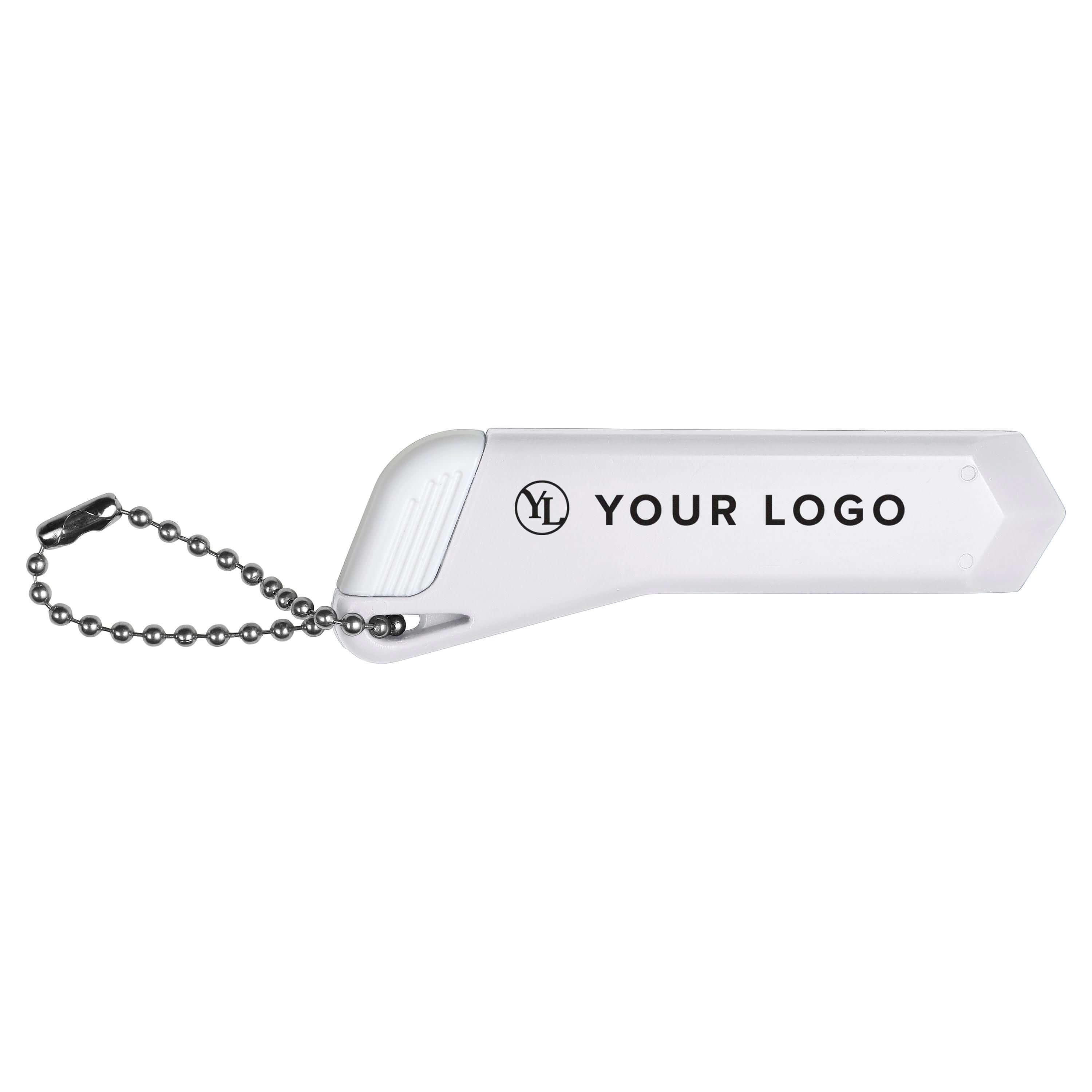 X-acto com porta-chaves. O comprimento da lâmina é de 4 cm (largura: 1,1 cm).