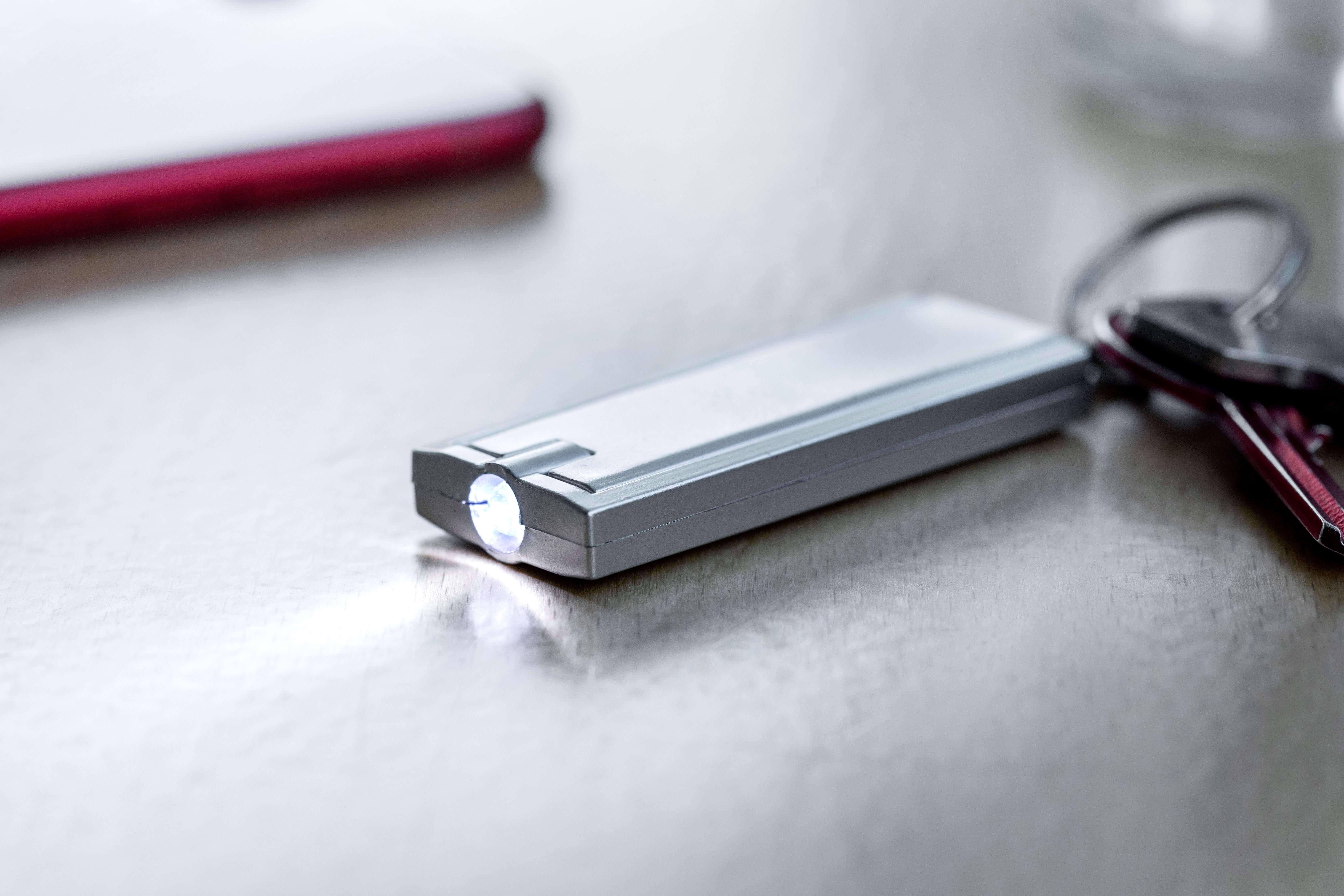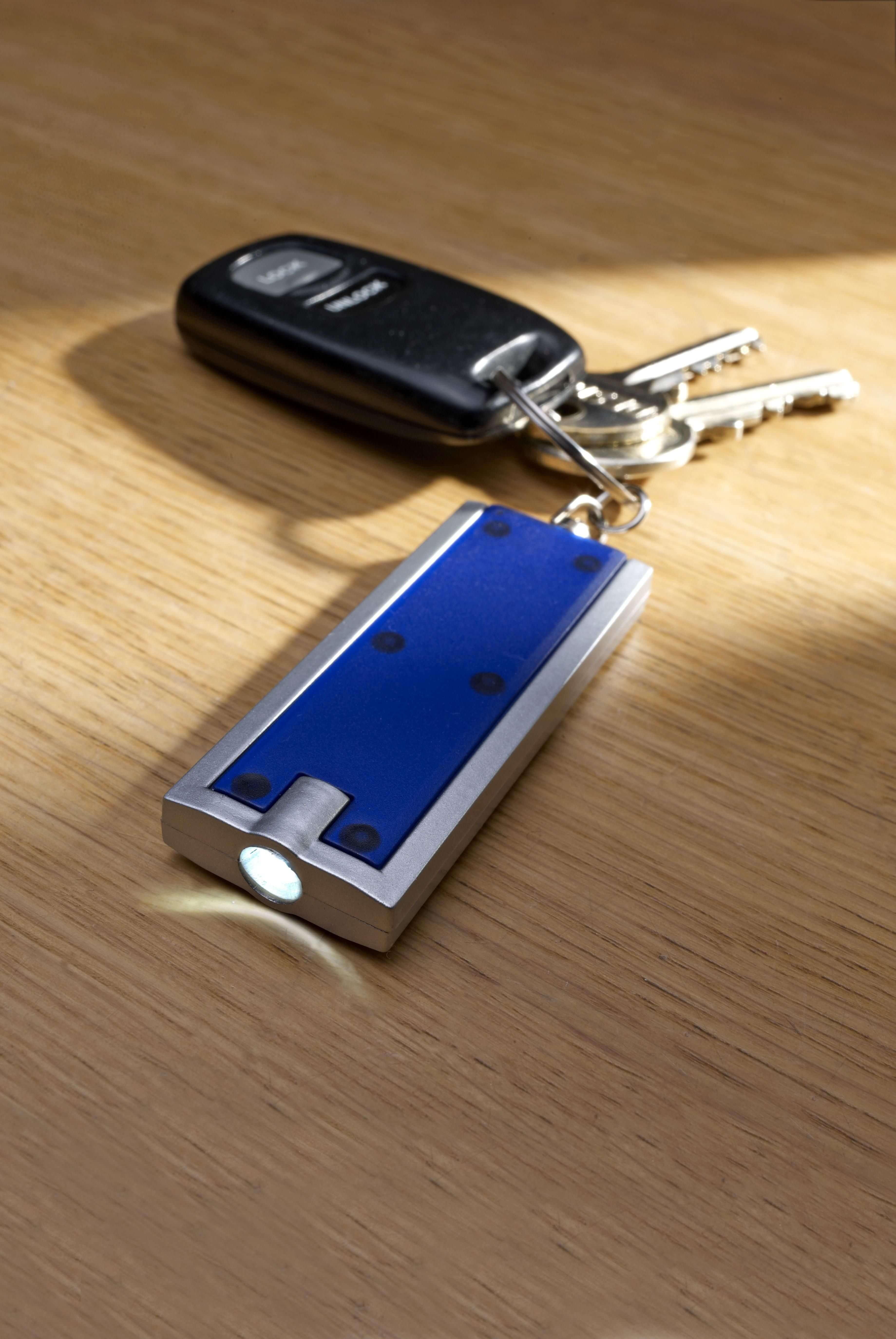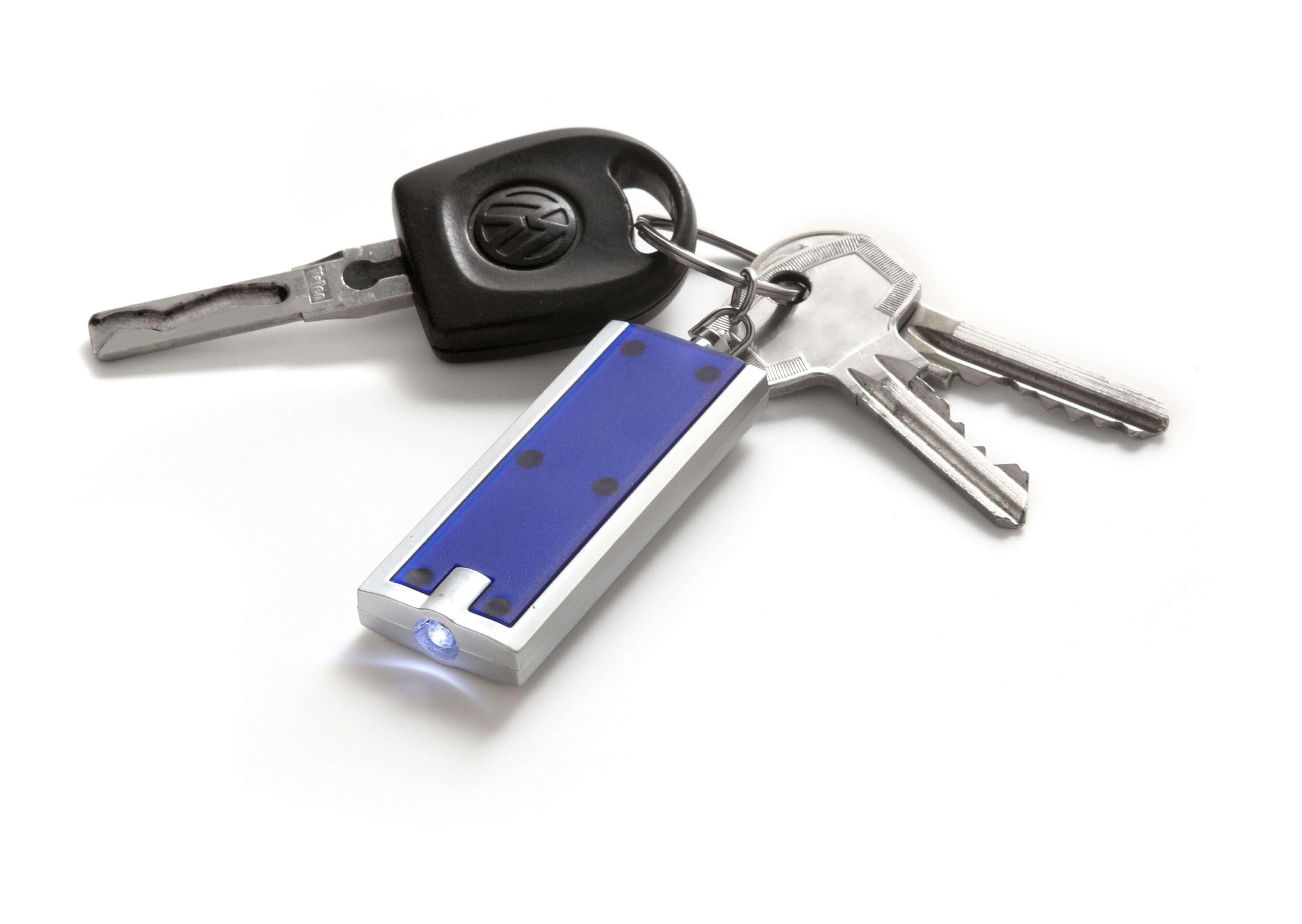 Porta-chaves em plástico com uma luz botão de pressão. Pilhas incluídas. Cor 01, 06, e 32 são cores sólidas; cor 04, 05 e 08 são as cores transparentes