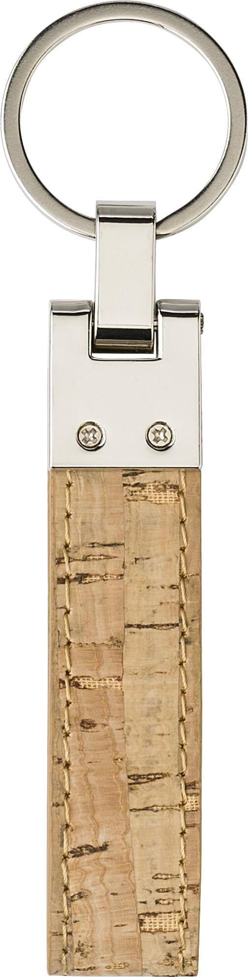 Porta-chaves em cortiça e metal. Embalado individualmente numa caixa de papel kraft.
