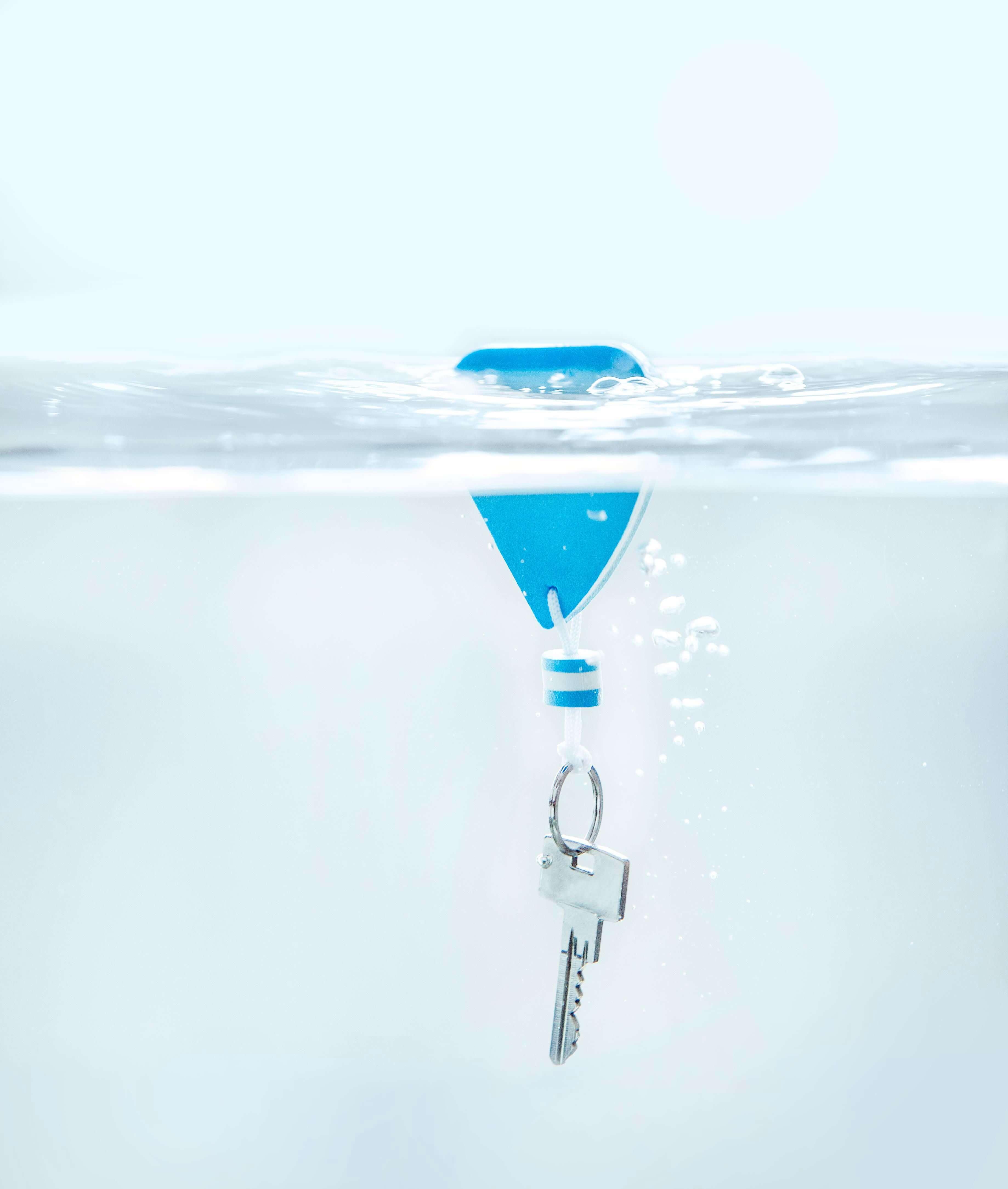Porta-chaves flutuante de EVA em forma de barco veleiro, corda de nylon e argola de metal.