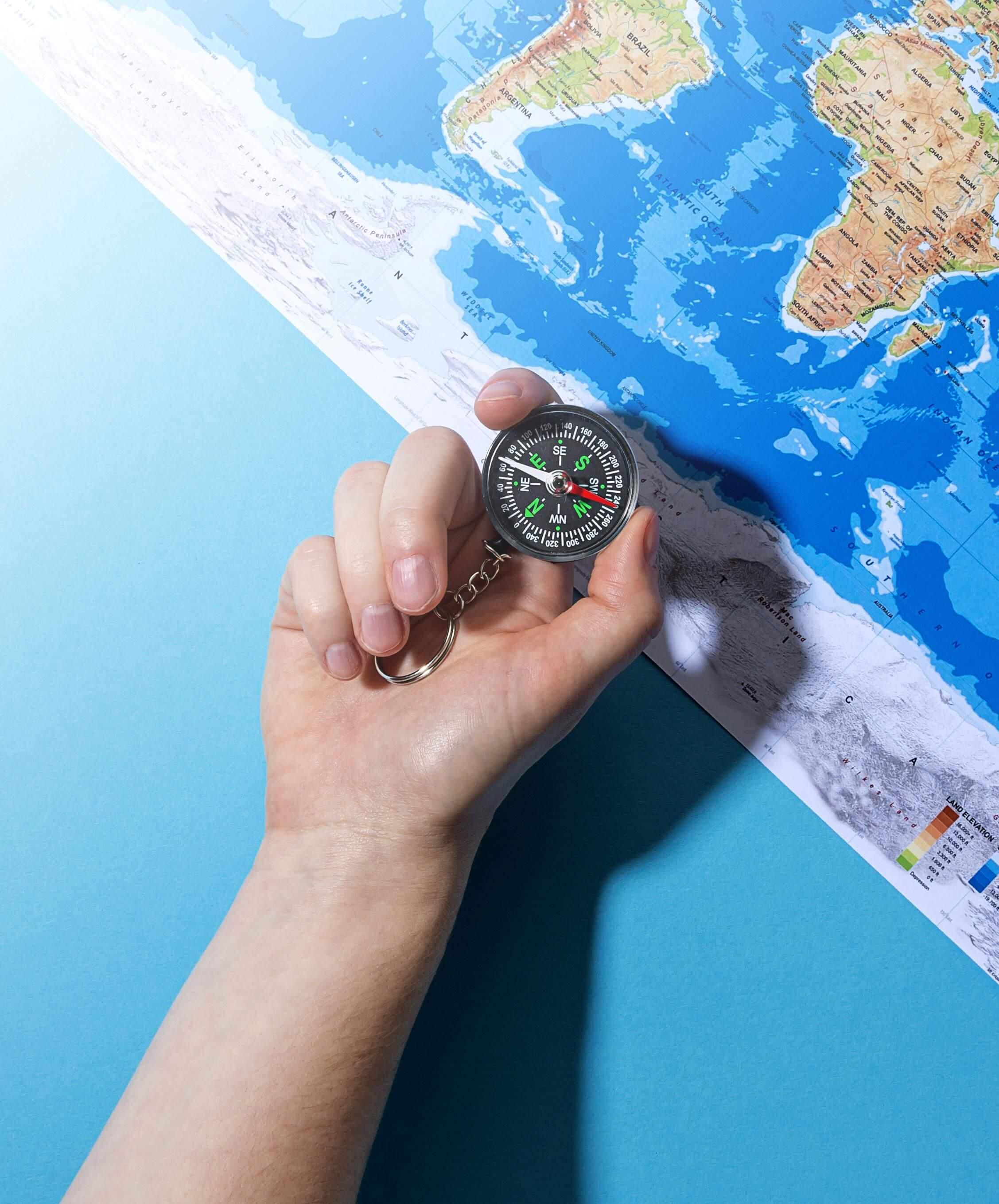 Porta-chaves com bússola. Para uso promocional.