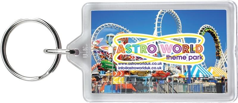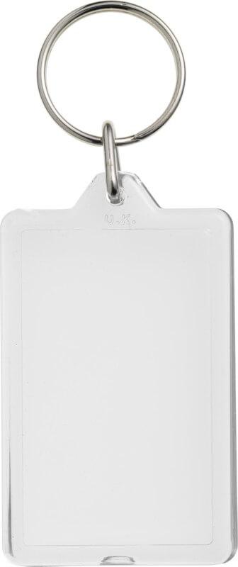 Porta-chaves transparente retangular G1 com argola em metal. Este porta-chaves pode ser reaberto com uma moeda. A argola de metal oferece um perfil liso que é ideal para envio pelo correio. Dimensões do papel impresso: 5,0 cm, x 3,0 cm.