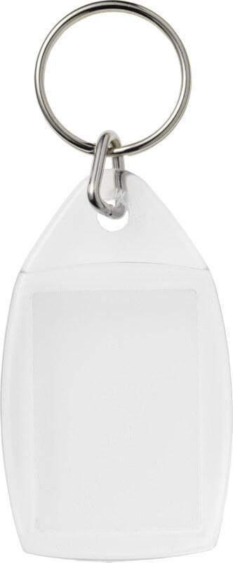 Porta-chaves transparente P5 com argola em metal. Dimensões do papel impresso: 3,5 cm, x 2,4 cm.