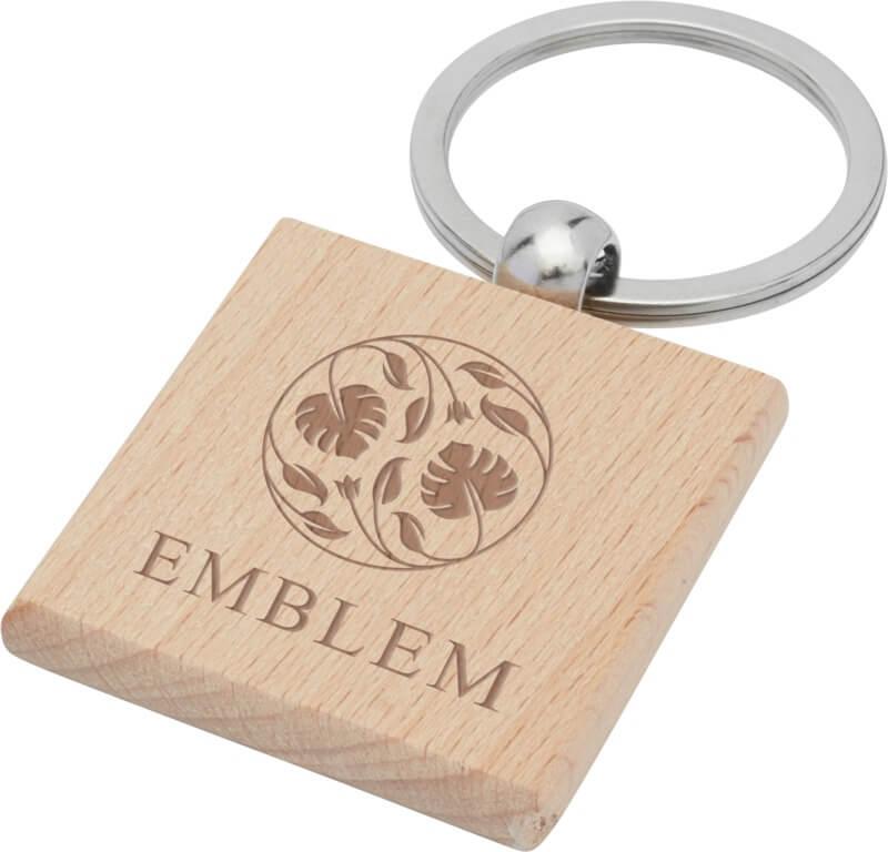 Porta-chaves quadrado produzido a partir de madeira de faia, fornecido num envelope de papel artesanal castanho. O tamanho do porta-chaves é de 4×4 cm. Concebido para gravação laser.