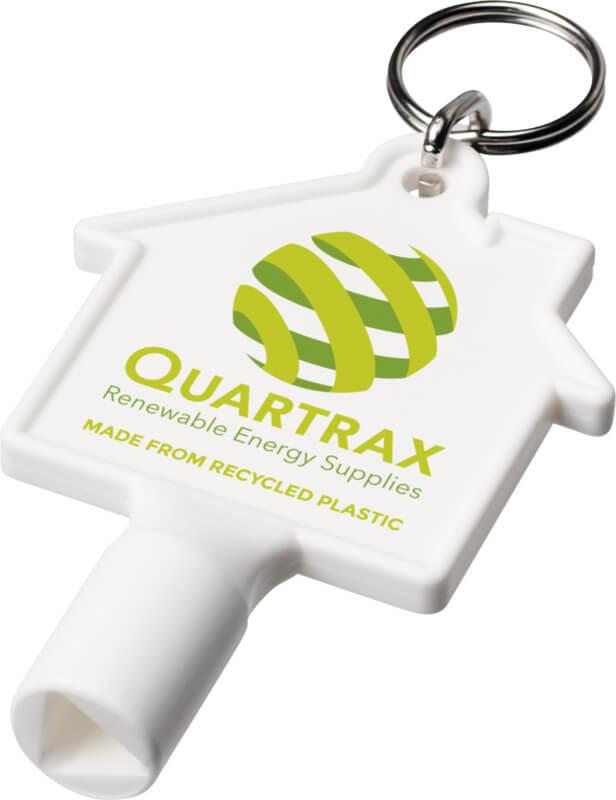 Chave de serviços públicos com chaveiro para objectos como parquímetros e postes de rua. Feito de plástico reciclado. As dimensões para a abertura tem forma triangular com lados de 8 mm. Devido à natureza do plástico reciclado, as tonalidades das cores podem variar ligeiramente e podem existir manchas de cor. Fabricada no Reino Unido.