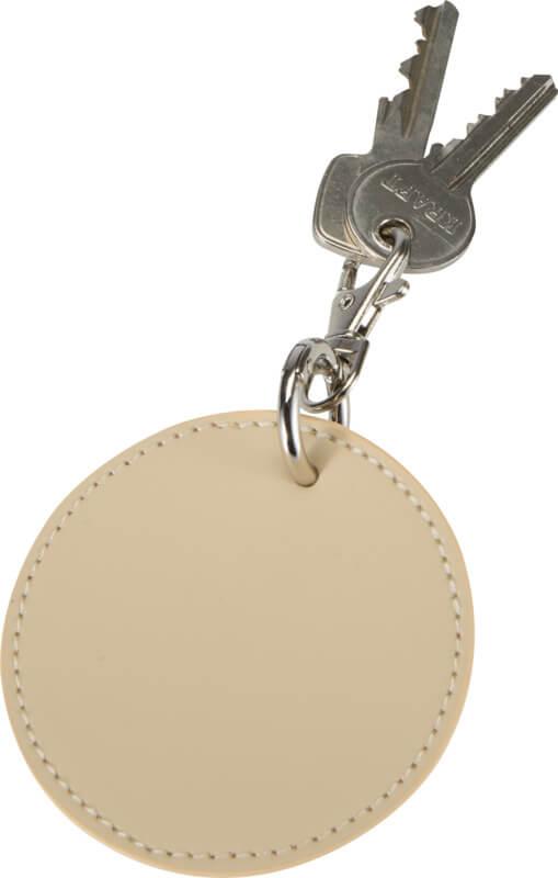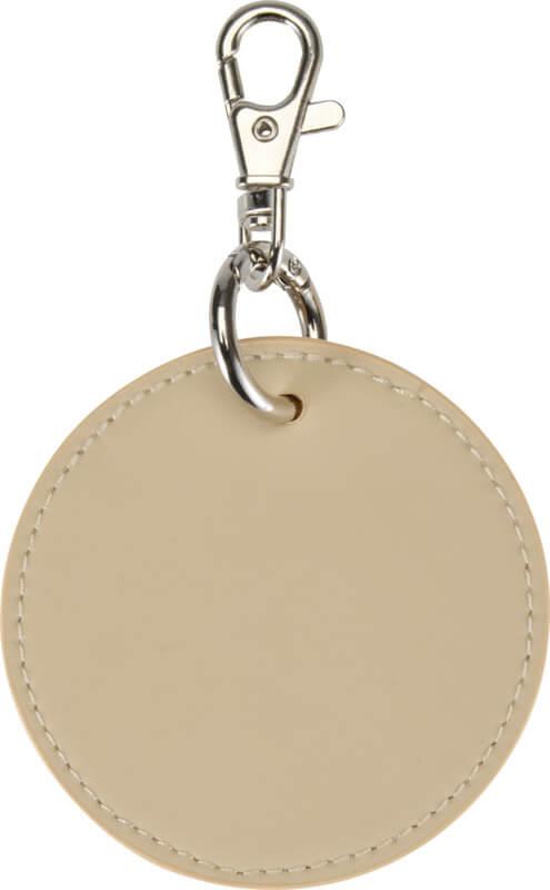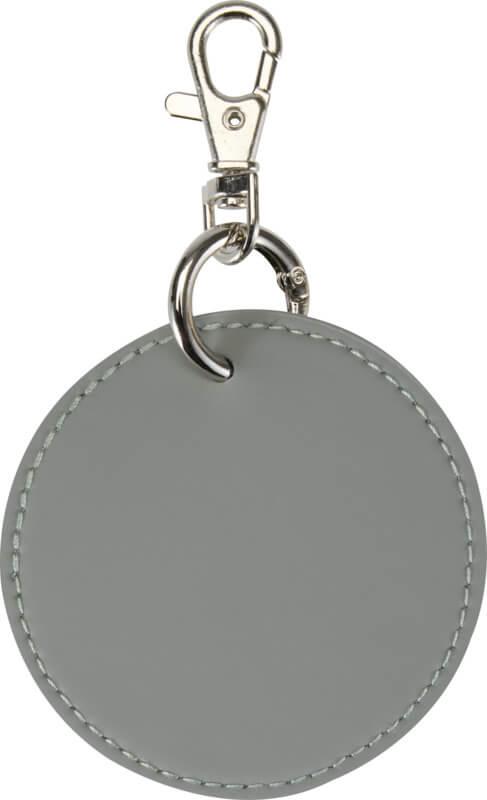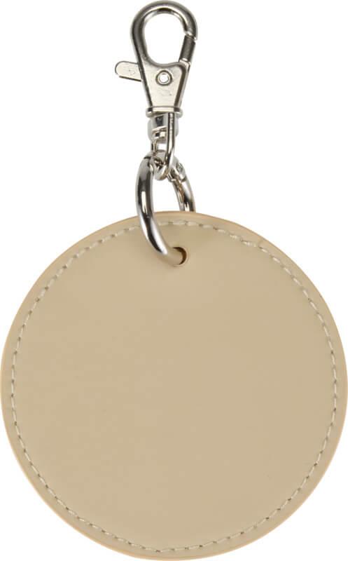 Confecionado em couro PU reciclado de alta qualidade, este pingente redondo com clipe adiciona um toque refinado aos seus acessórios do dia a dia. Com 7,5 cm de diâmetro, é o acessório perfeito para uma bolsa ou um molho de chaves. Leve e resistente, encaixa-se sem esforço, combinando um estilo discreto com uma escolha de material mais responsável.