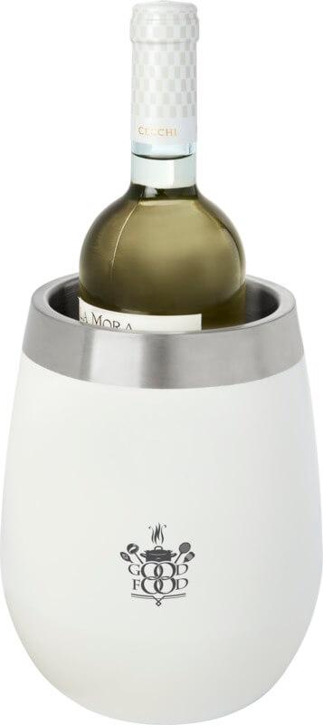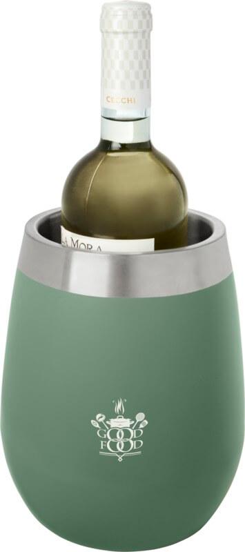 Refrigerador de vinho de parede dupla em aço inoxidável com uma camada exterior colorida. A camada interior de aço é fácil de limpar e mantém o vinho agradável e fresco.