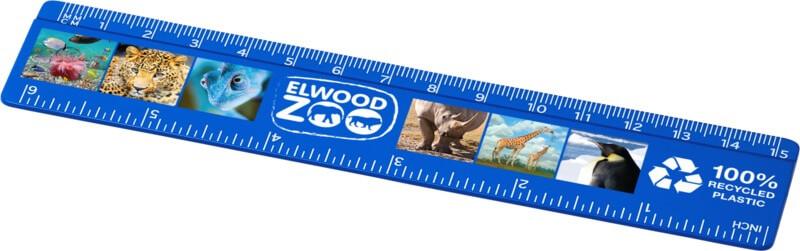 Régua sólida de plástico reciclado em forma de camião com marcações em polegadas ou em centímetros.