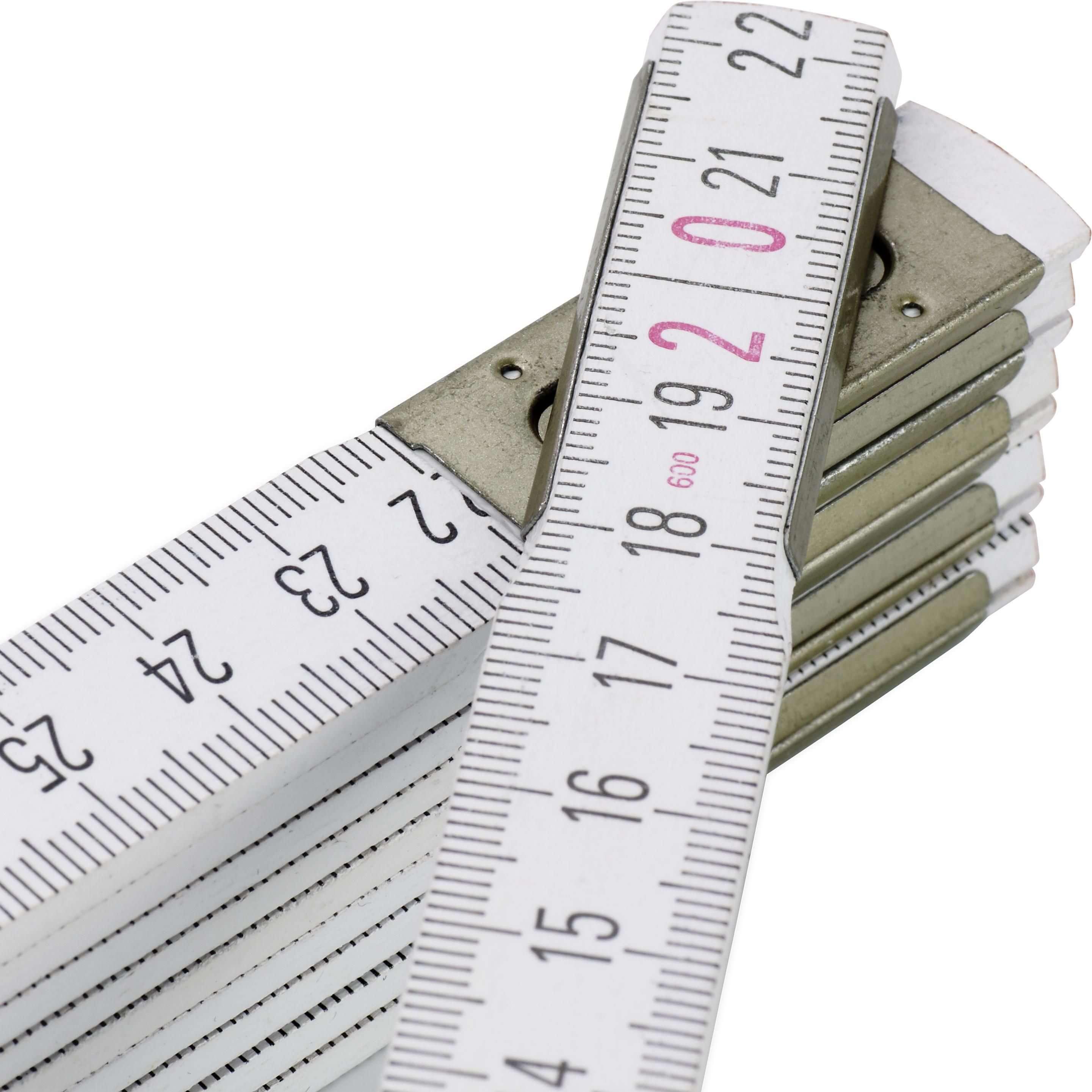 Régua de madeira Stabila dobrável com um comprimento total de 2 metros. A escala está em cm. A régua tem um revestimento protetor. Com marcação CE e metrologia e certificado de exame de tipo CE. Classe de precisão 3.