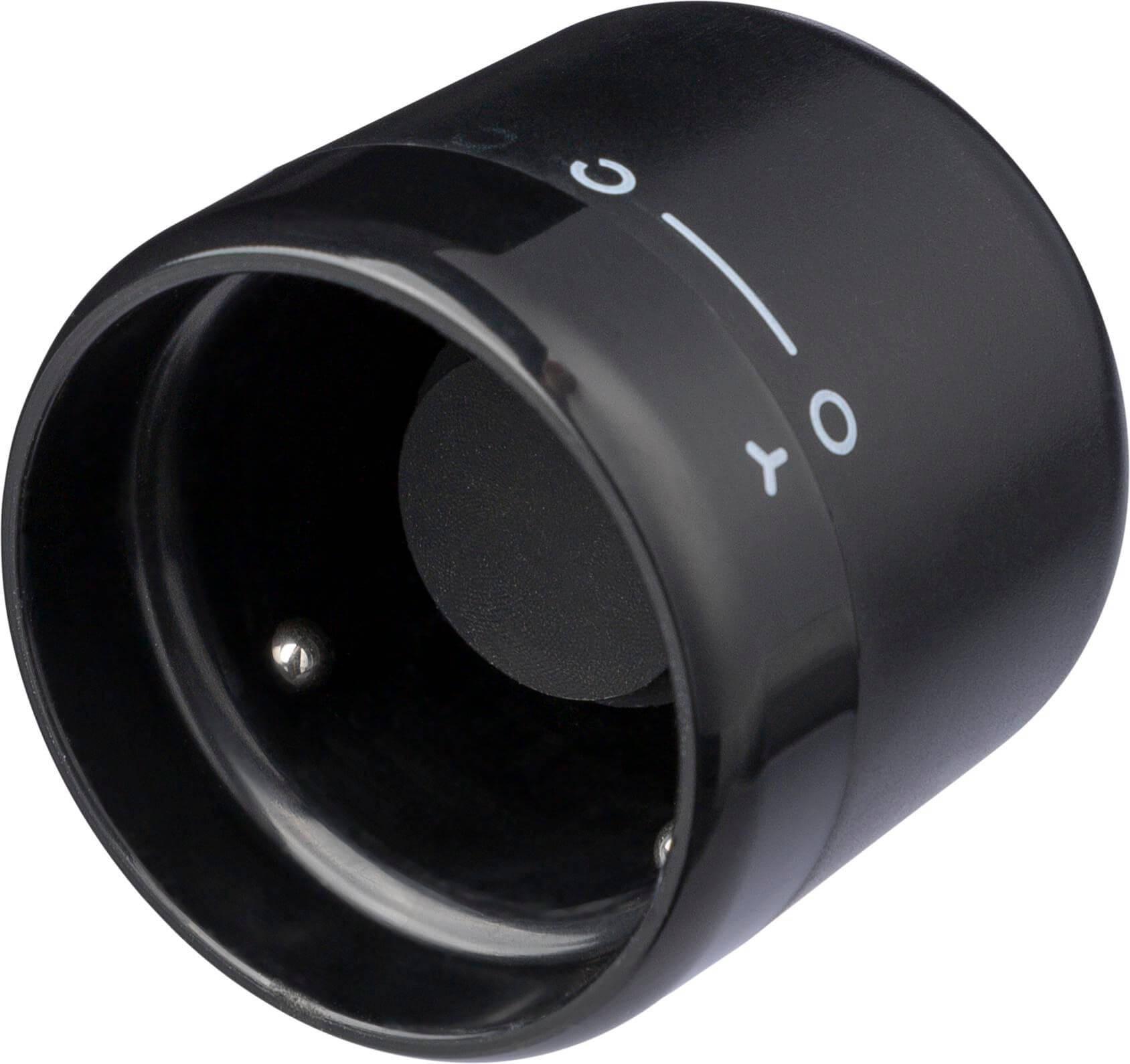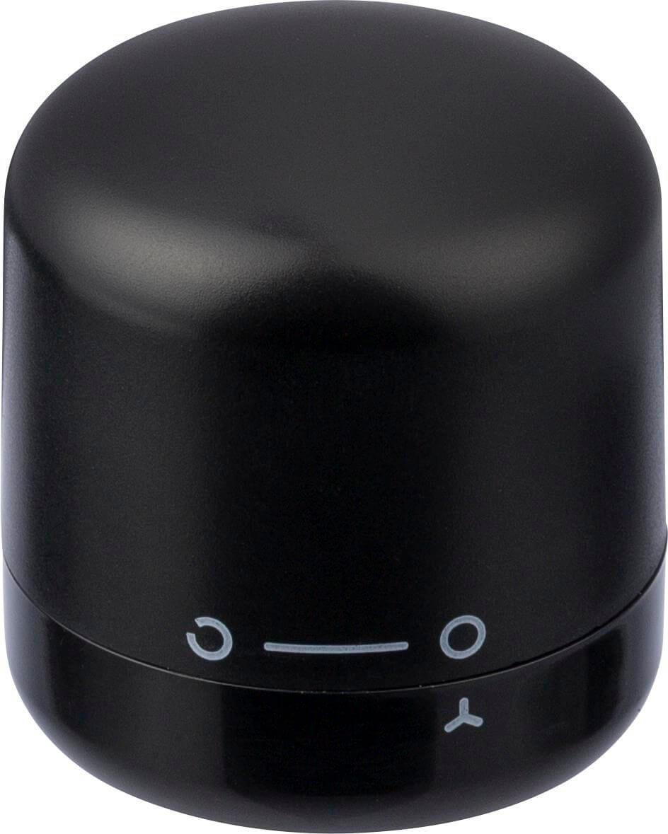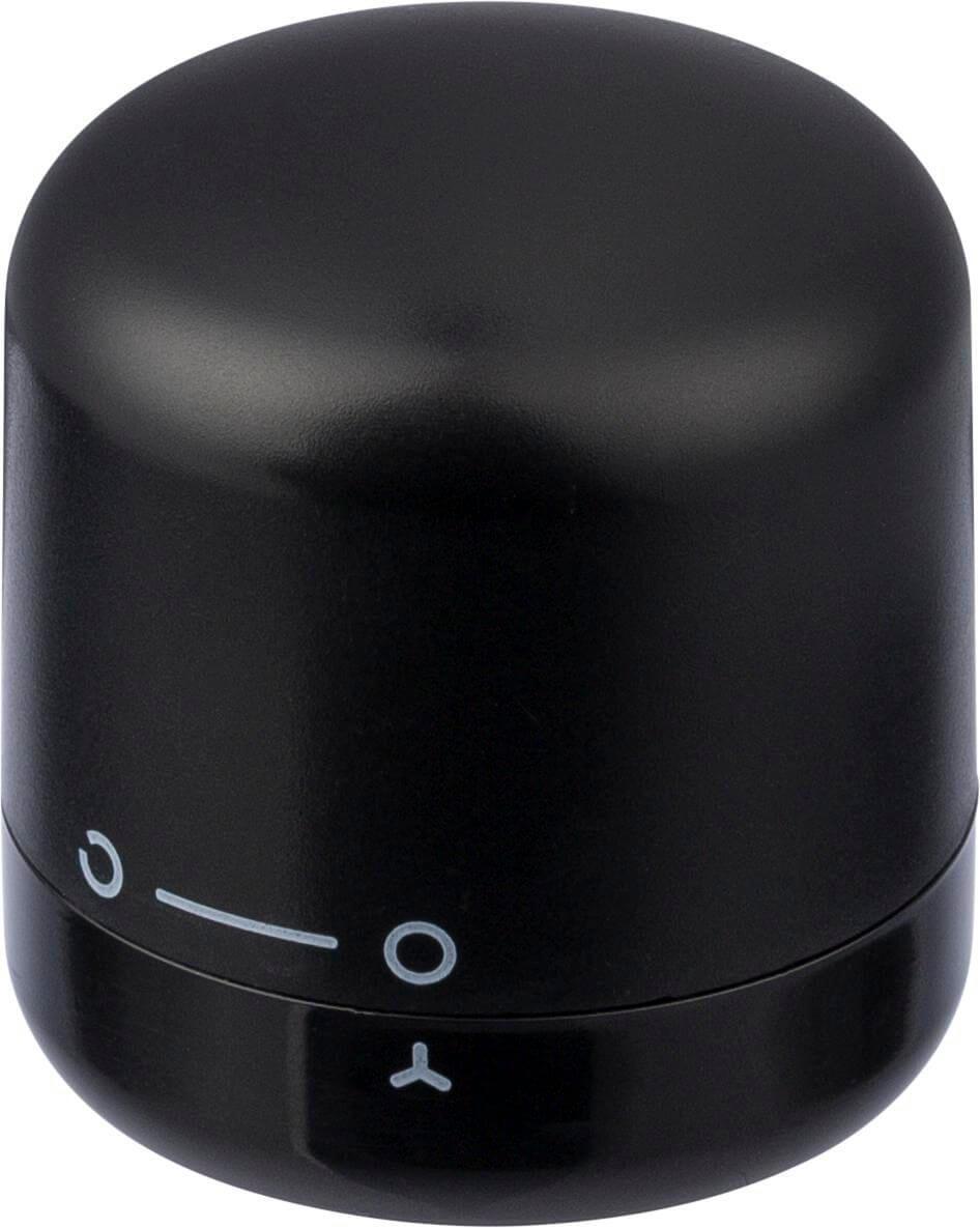 Rolha de garrafa em ABS com um mecanismo de fecho rotativo. Embalada individualmente numa caixa de cartão castanha.