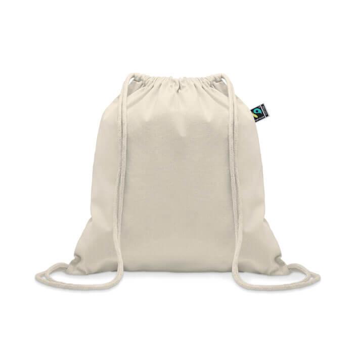 Saco com cordão em algodão certificação Fairtrade (Comércio Justo). 180 gr/m². Este produto tem a certificação OEKO-TEX® STANDARD 100.