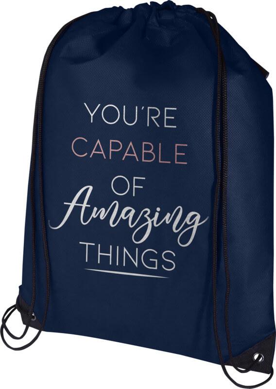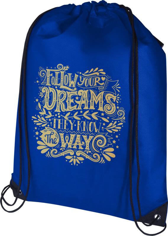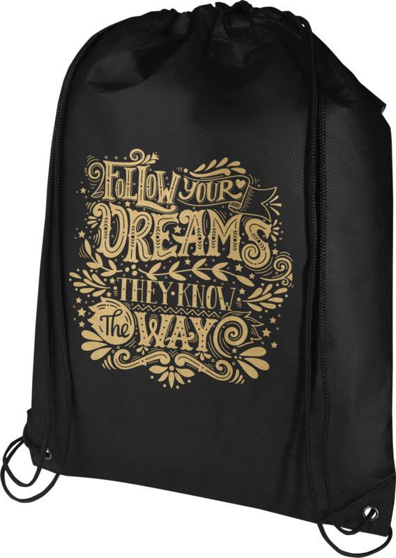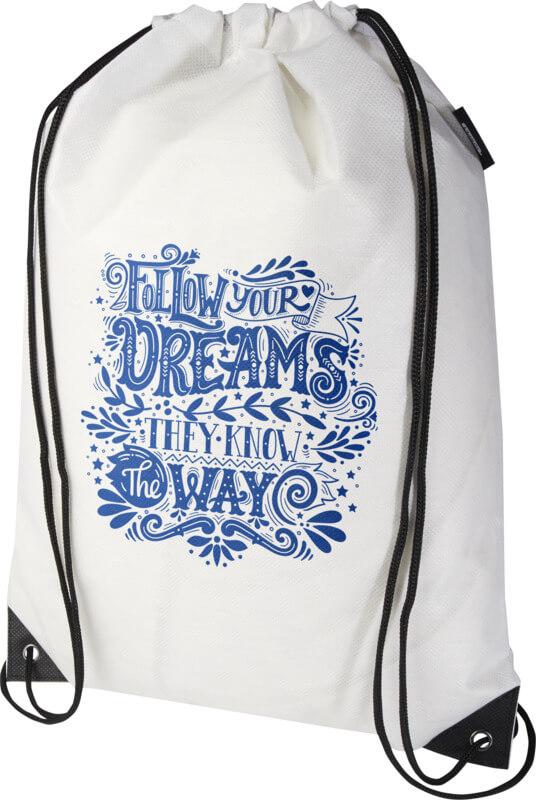 Feito de RPET não tecido, durável e resistente a rasgos, o saco com cordão “Evergreen” reciclado e com certificação GRS é uma ótima opção se procura um presente fácil de utilizar para promover alguma marca ou campanha de marketing. Este saco leve é económico e tem um design com cordão, ideal para ser facilmente transportado no ombro ou como mochila. Capacidade volumétrica: 5 litros. Resistência até 5 kg de peso.