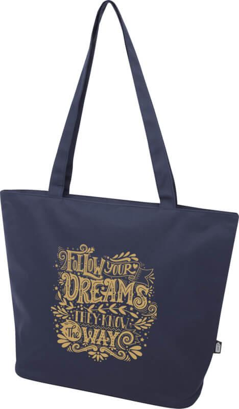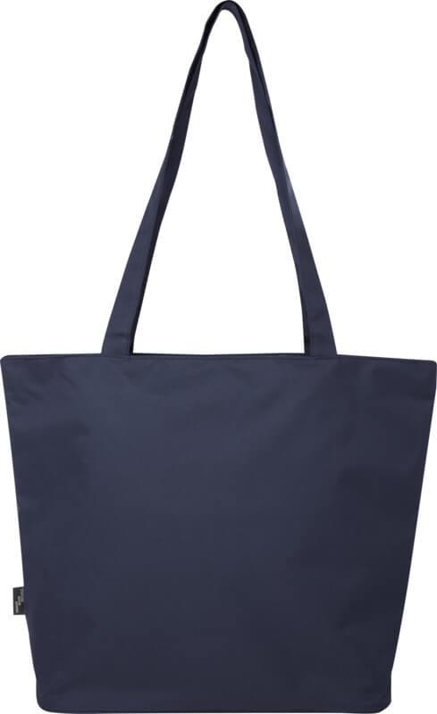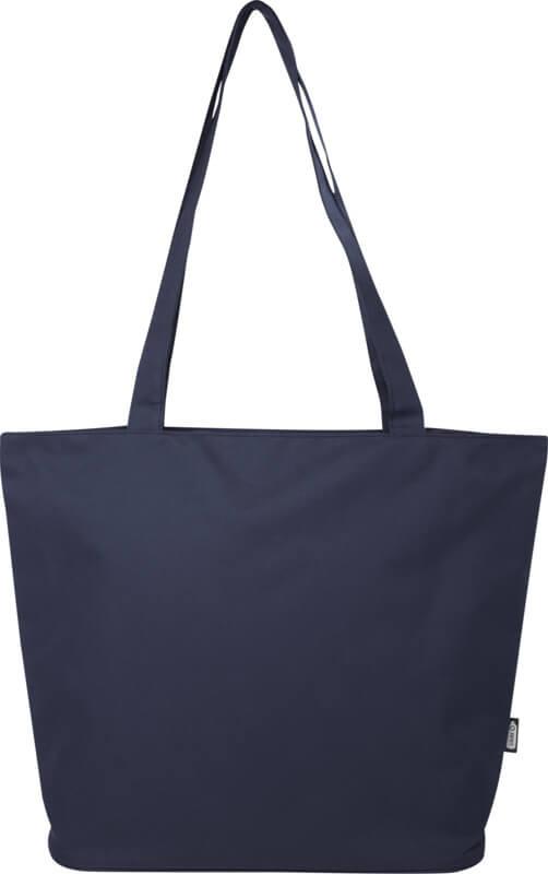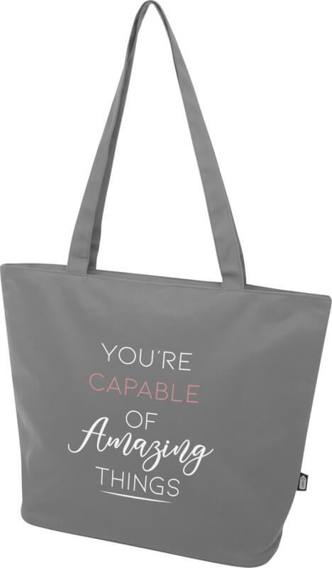 Feito de RPET 600D repelente à água, o saco “Panama” reciclado GRS com fecho de correr é um saco multifuncional perfeito e sustentável para ir a um evento, à praia , ou para usar em compras de supermercado. Possui um compartimento principal com fecho correr e um bolso interno também com fecho de correr grande o suficiente para guardar seu telemóvel e outros pertences valiosos. As alças têm 34 cm de comprimento e por isso o saco é fácil de transportar no ombro. Resistência até 10 kg de peso. Sem PVC.