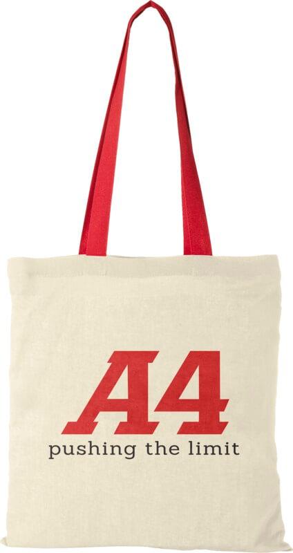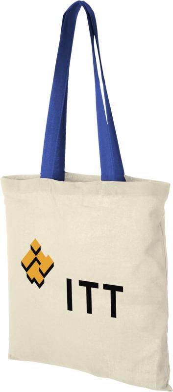 Com as suas pegas coloridas, este saco irá adicionar cor a cada evento, congresso ou festival. O saco de algodão de 100 g/m² Nevada é um saco económico e leve, com um compartimento principal aberto. Com a sua capacidade de 7 litros, este saco é perfeito para transportar o essencial do dia-a-dia, desde um telefone e uma carteira até um livro ou uma tábua favorita. As pegas de 30 cm de comprimento tornam-no um saco fácil de transportar. Fabricada na Índia e certificada OEKO-Tex. Resistência até 5 kg de peso.