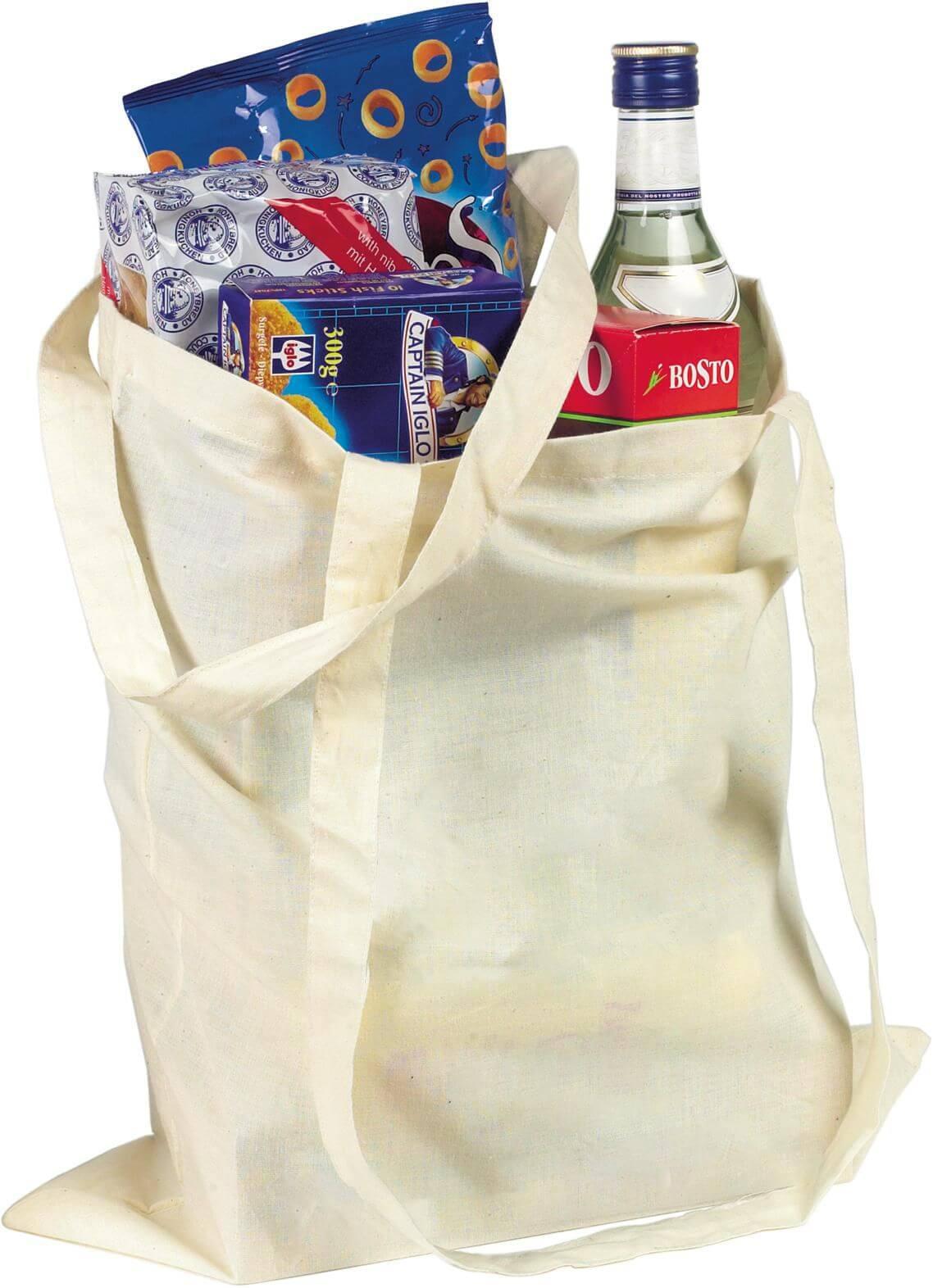 Saco de algodão (120 gr/m²) com pegas compridas.