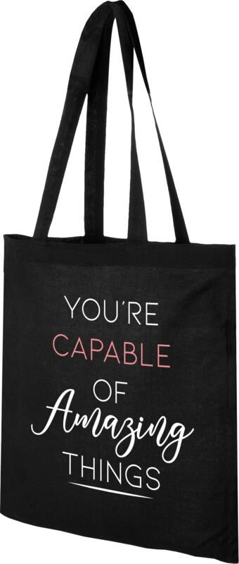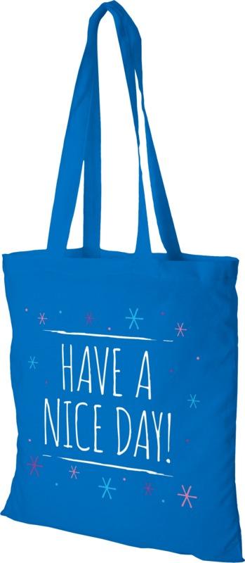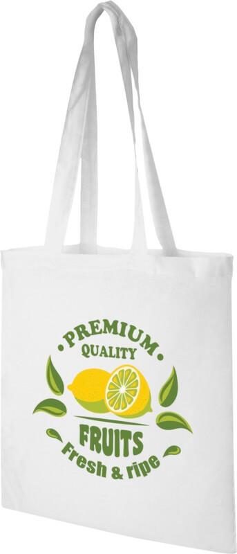 O saco Madras tote é perfeito para oferecer durante qualquer evento, conferência ou para usar como saco de compras para pequenas mercearias. A densidade de algodão de 140 g/m² torna o saco robusto, duradouro e adequado para transportar artigos pesados no compartimento principal. Com as pegas de 30 cm de comprimento, este saco de compras é fácil de transportar. Fabricado na Índia e certificada OEKO-Tex. Resistência até 5kg de peso.