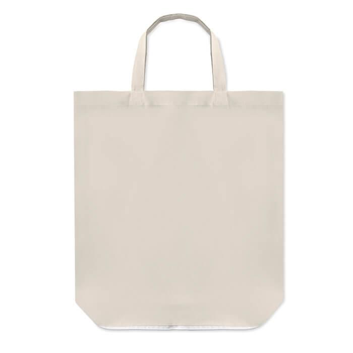Sacola de compras dobrável em algodão com alças curtas. 100 gr / m². Fornecido desdobrado.