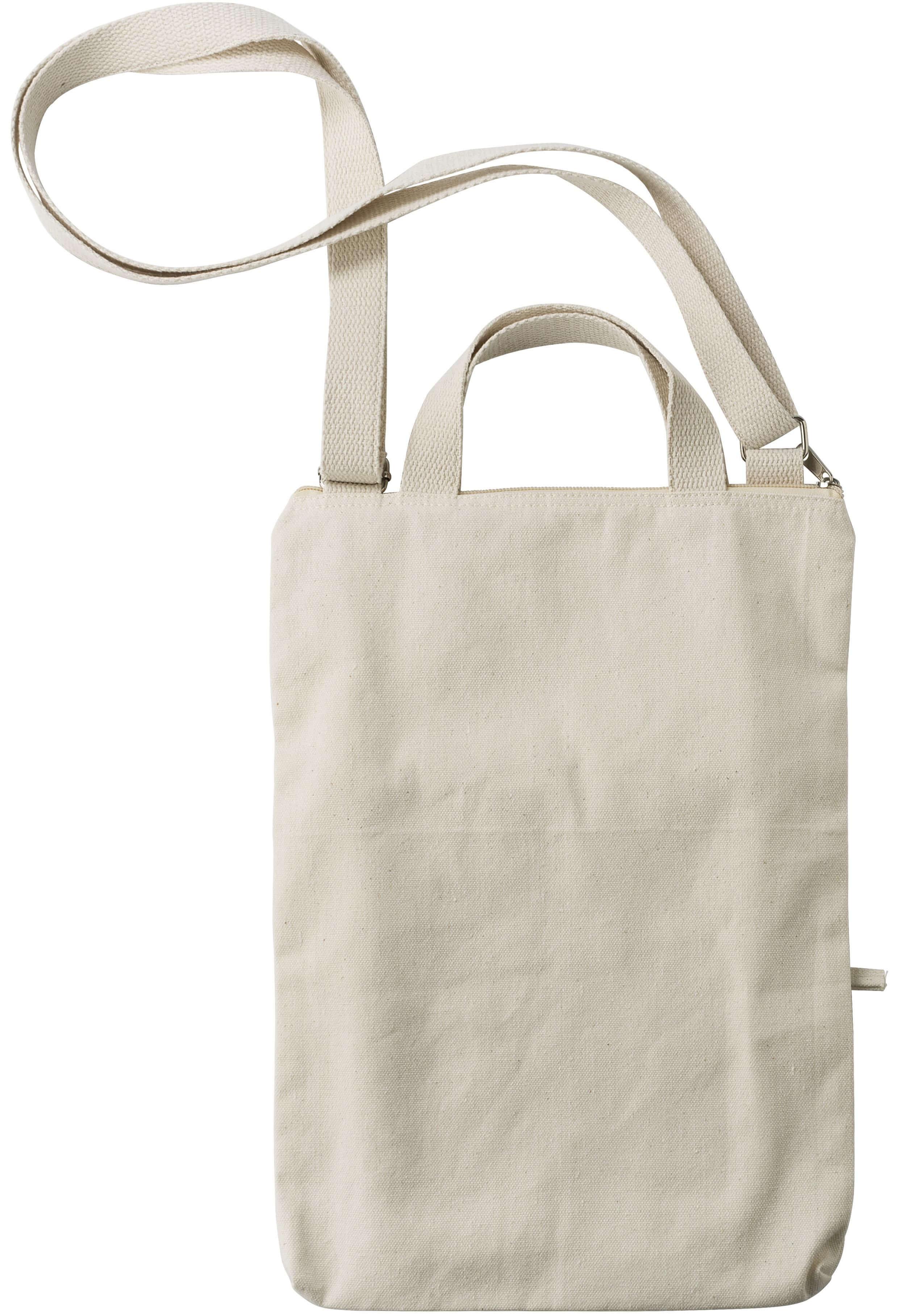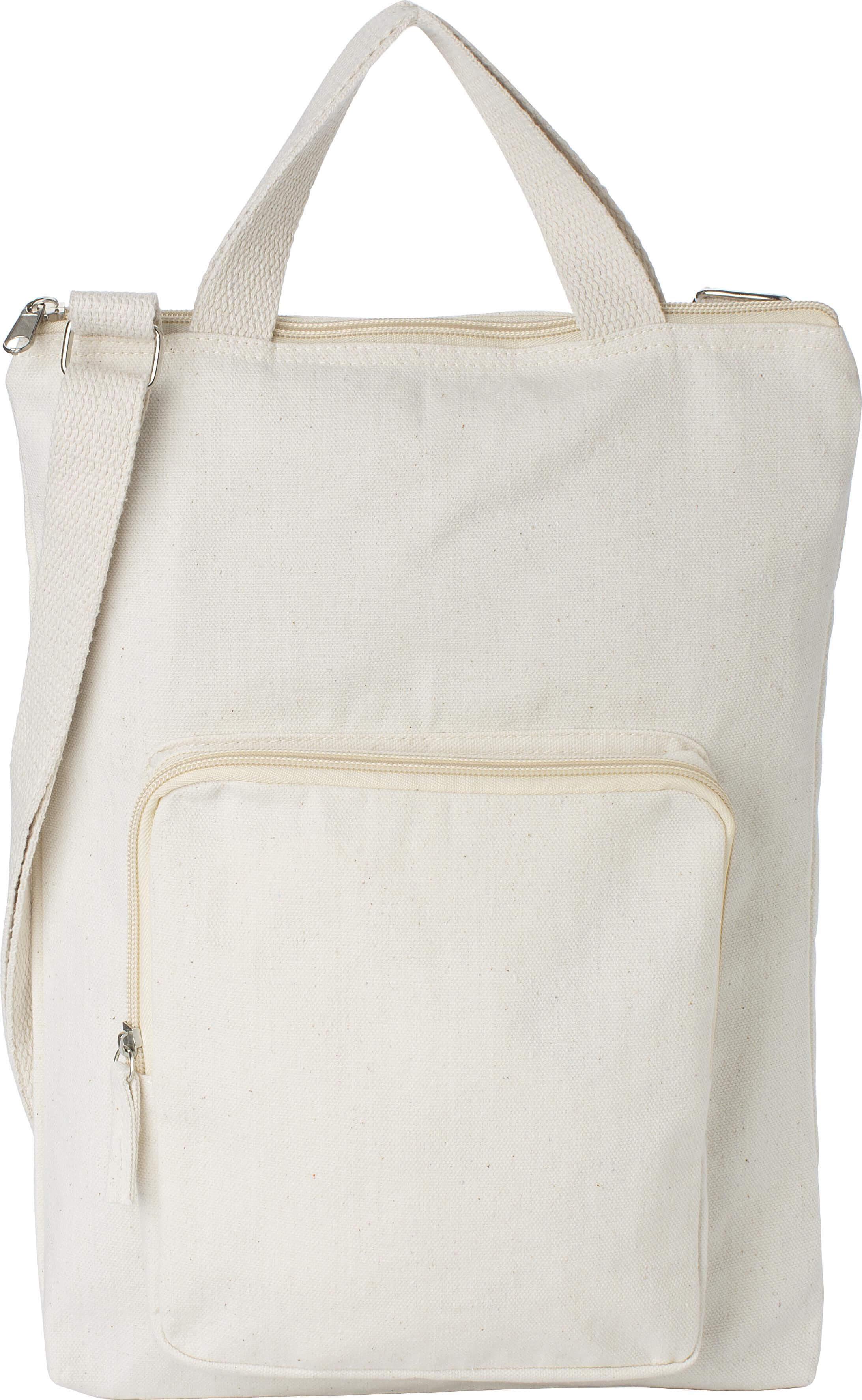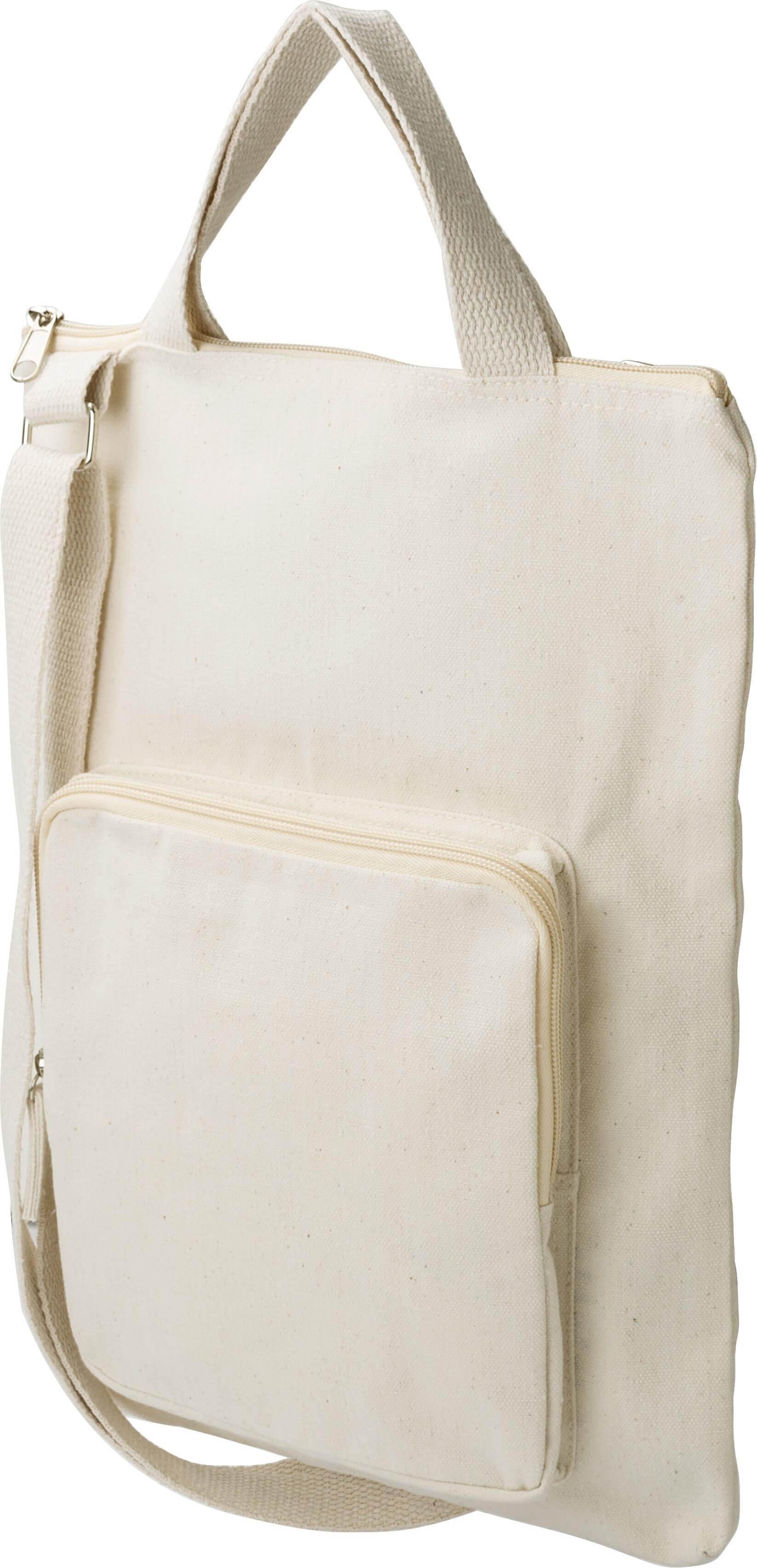 Saco para computador portátil (15”) em algodão (340 g/m2). Possui um compartimento grande com fecho e um pequeno bolso frontal com fecho. Duas pegas curtas e uma alça de ombro ajustável.