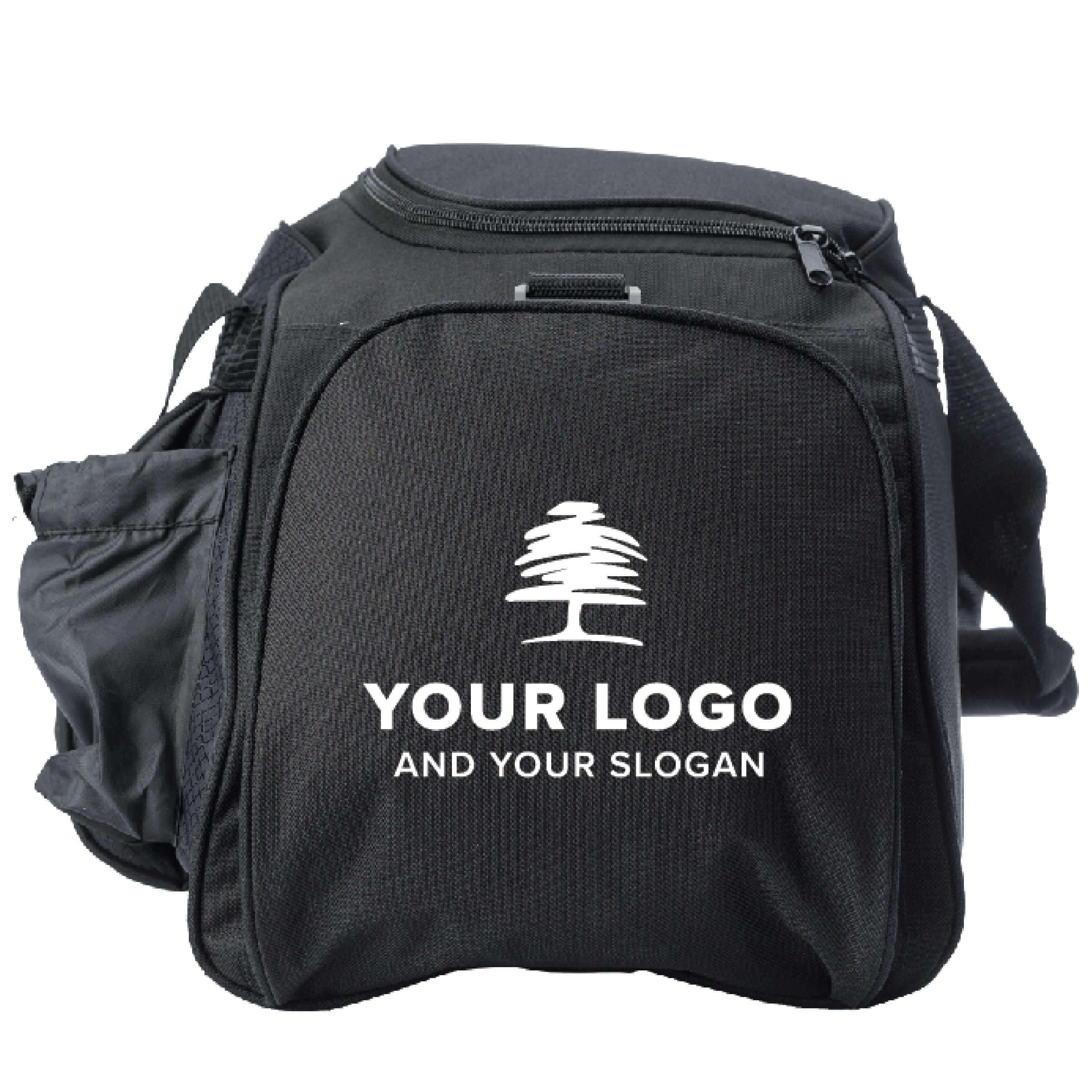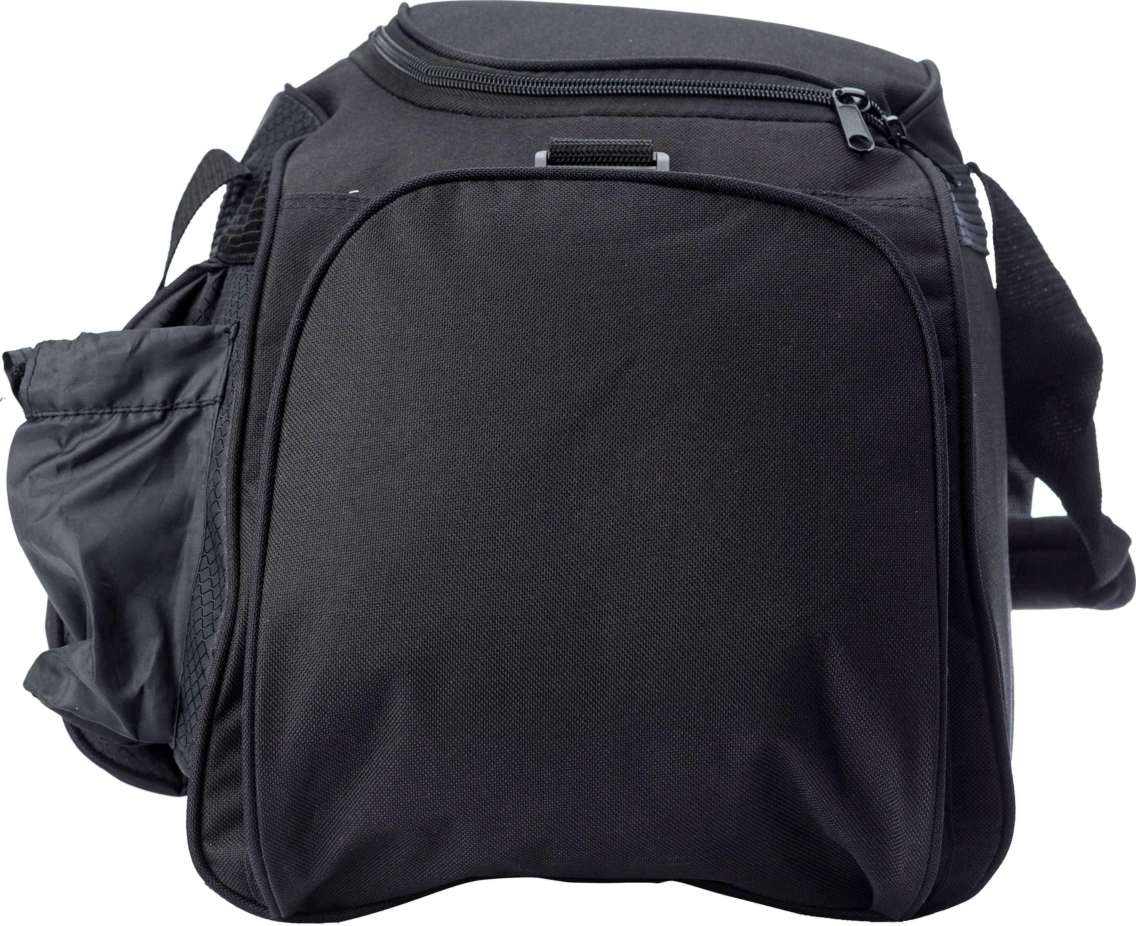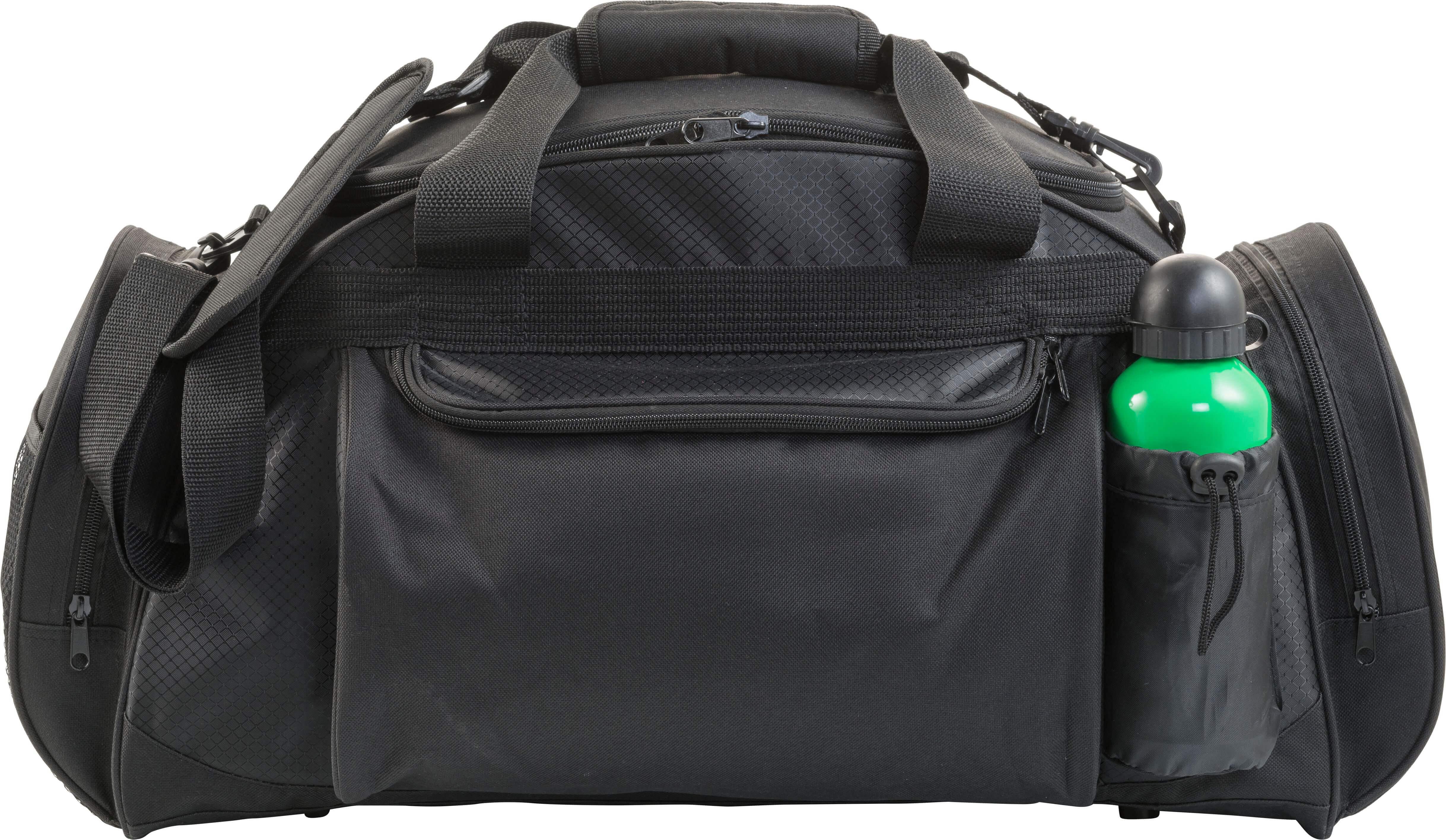 Saco de desporto/ viagem, bolso com fecho de correr e compartimento frontal para garrafa e bolso lateral com saida para auriculares, grande compartimento central com fecho de correr.