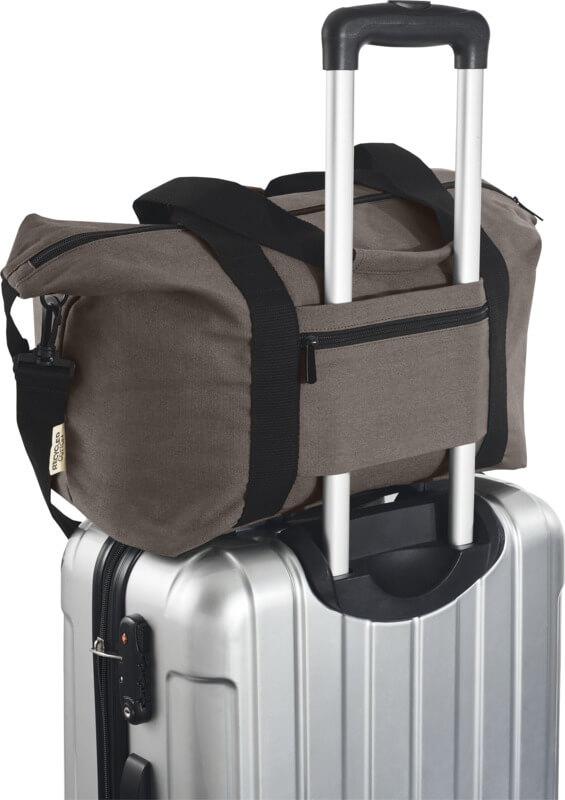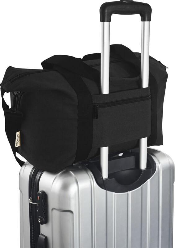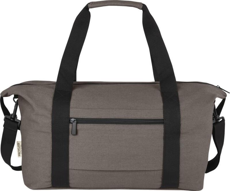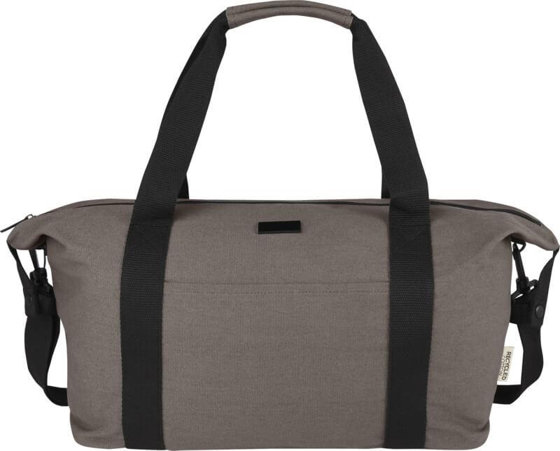 Composto por materiais altamente duráveis e sustentáveis, lona reciclada GRS e forro GRS RPET, o saco de desporto “Joey” de 25 litros possui um espaçoso compartimento principal com fecho e um bolso interno com fecho para segurança. Também tem 1 bolso frontal aberto e outro bolso com fecho de correr na parte de trás para carrinho, e pode ser transportado por alças de correia reforçadas ou pela alça de ombro removível e ajustável para maior conforto. A placa de metal decorativa pode fazer um logótipo brilhar através do seu acabamento subtil e mate.
