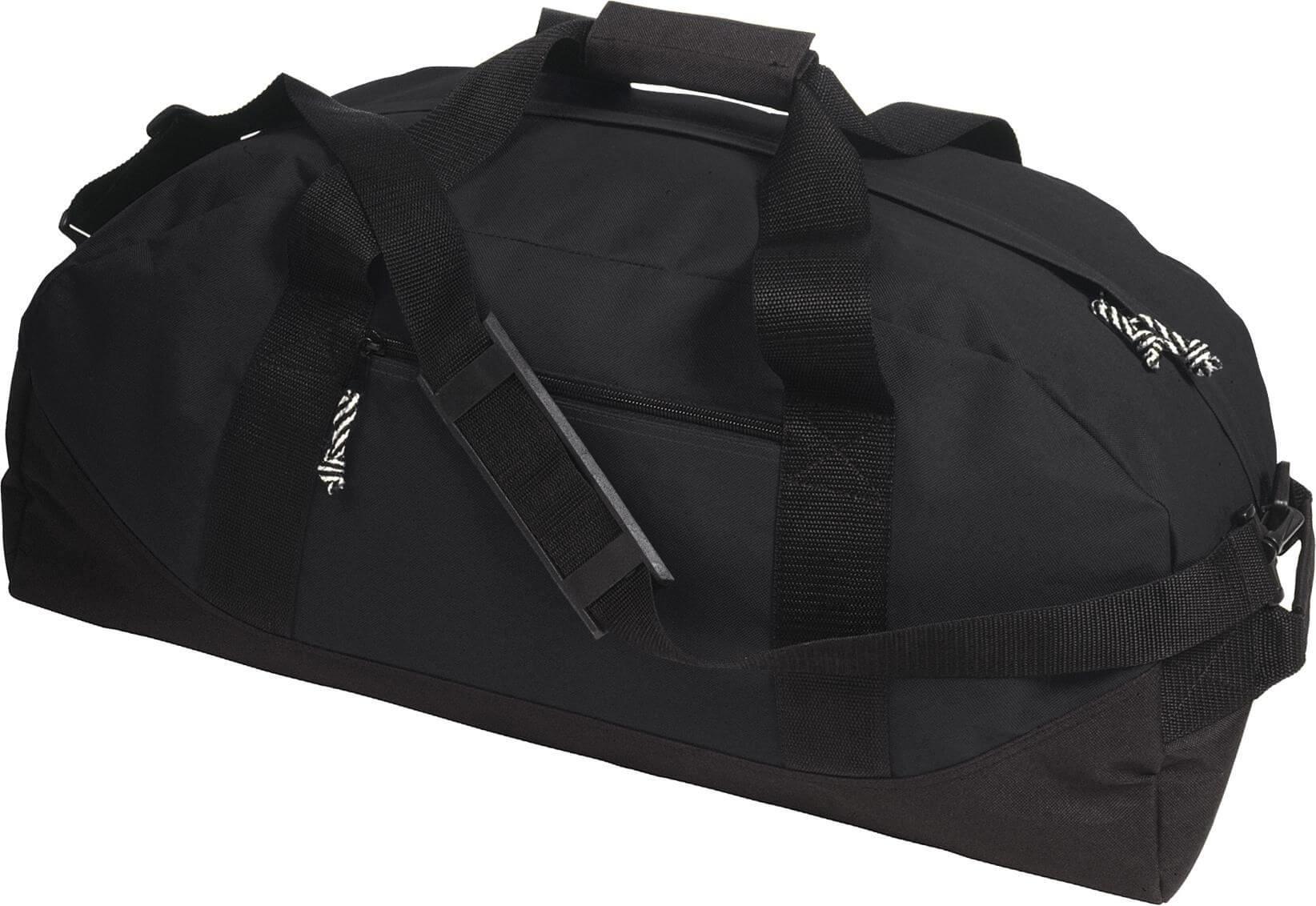 Saco de desporto de poliéster 600D com compartimento principal e bolsa frontal com fecho de correr, alças e alça de transporte removível ajustável.