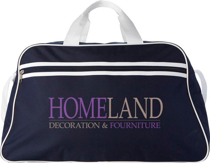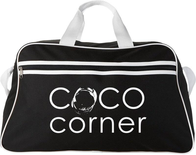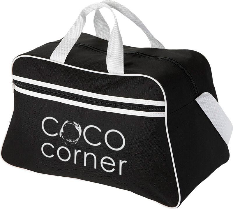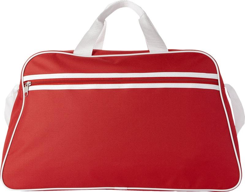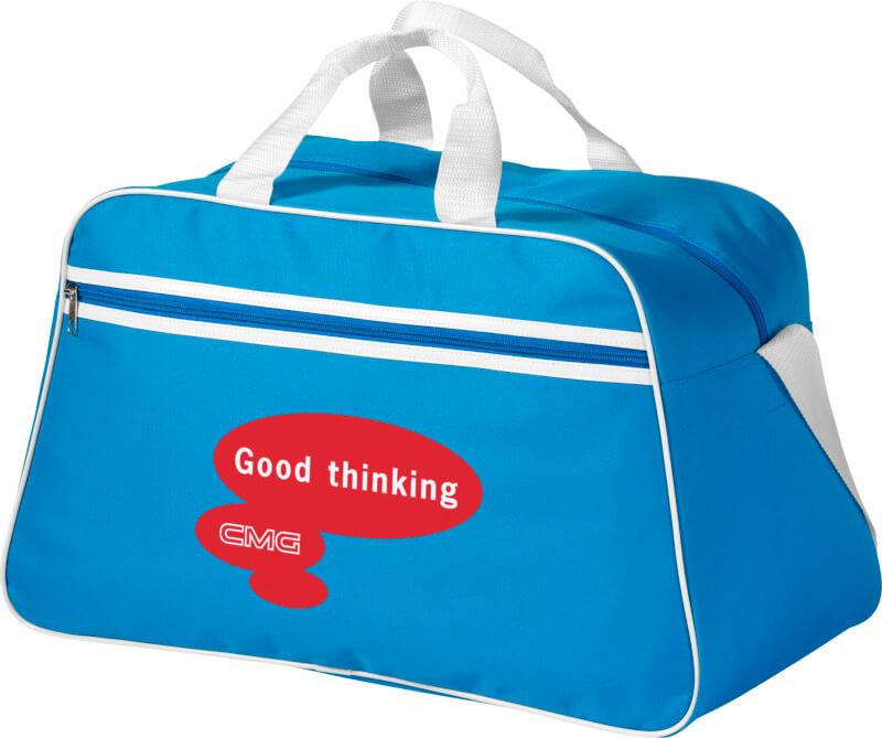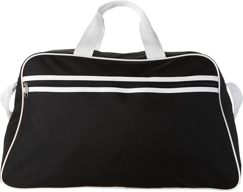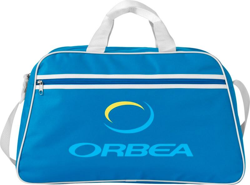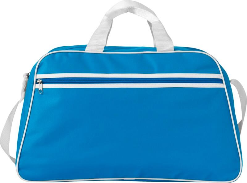 Saco de desporto com compartimento principal com fecho e bolso frontal com fecho.