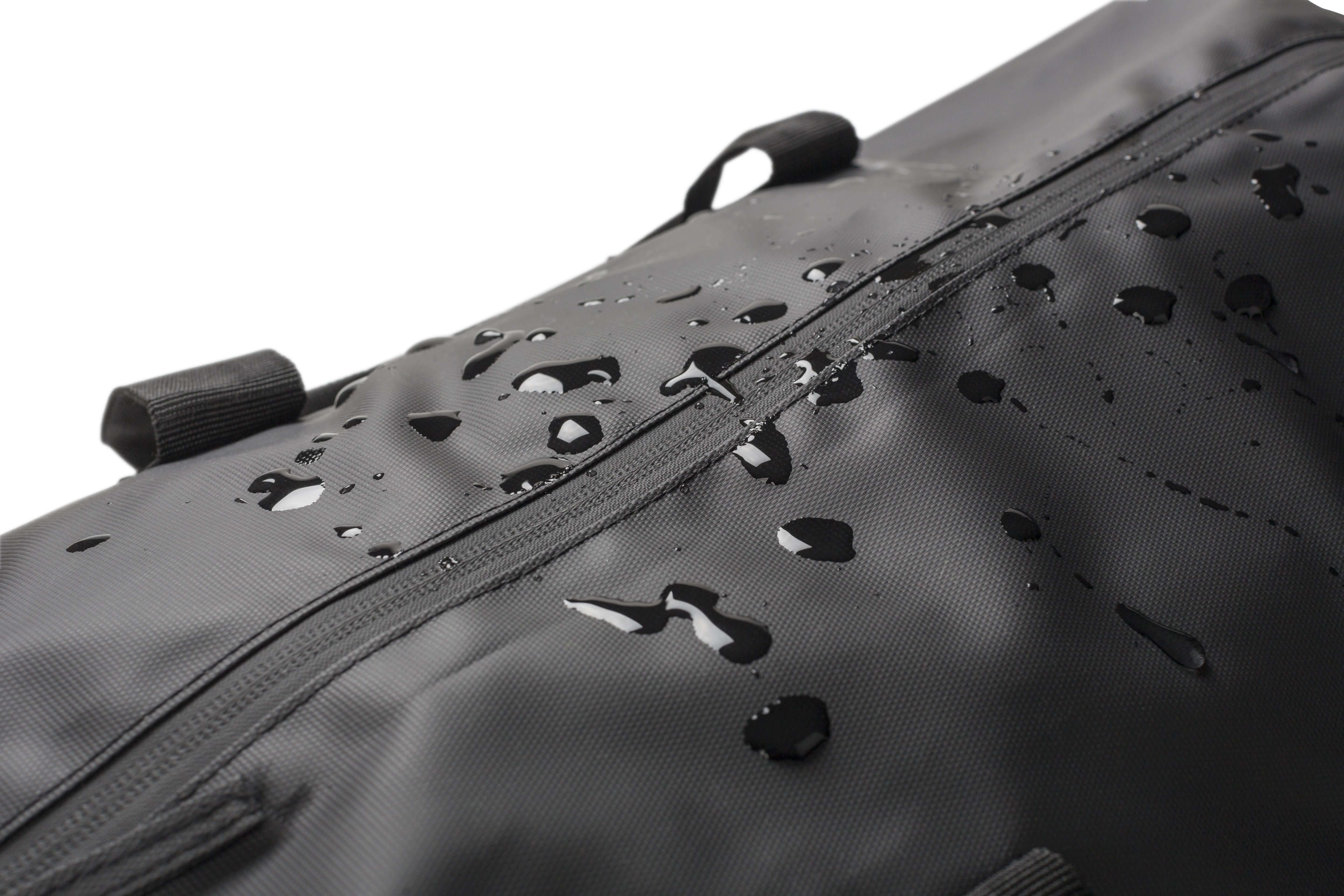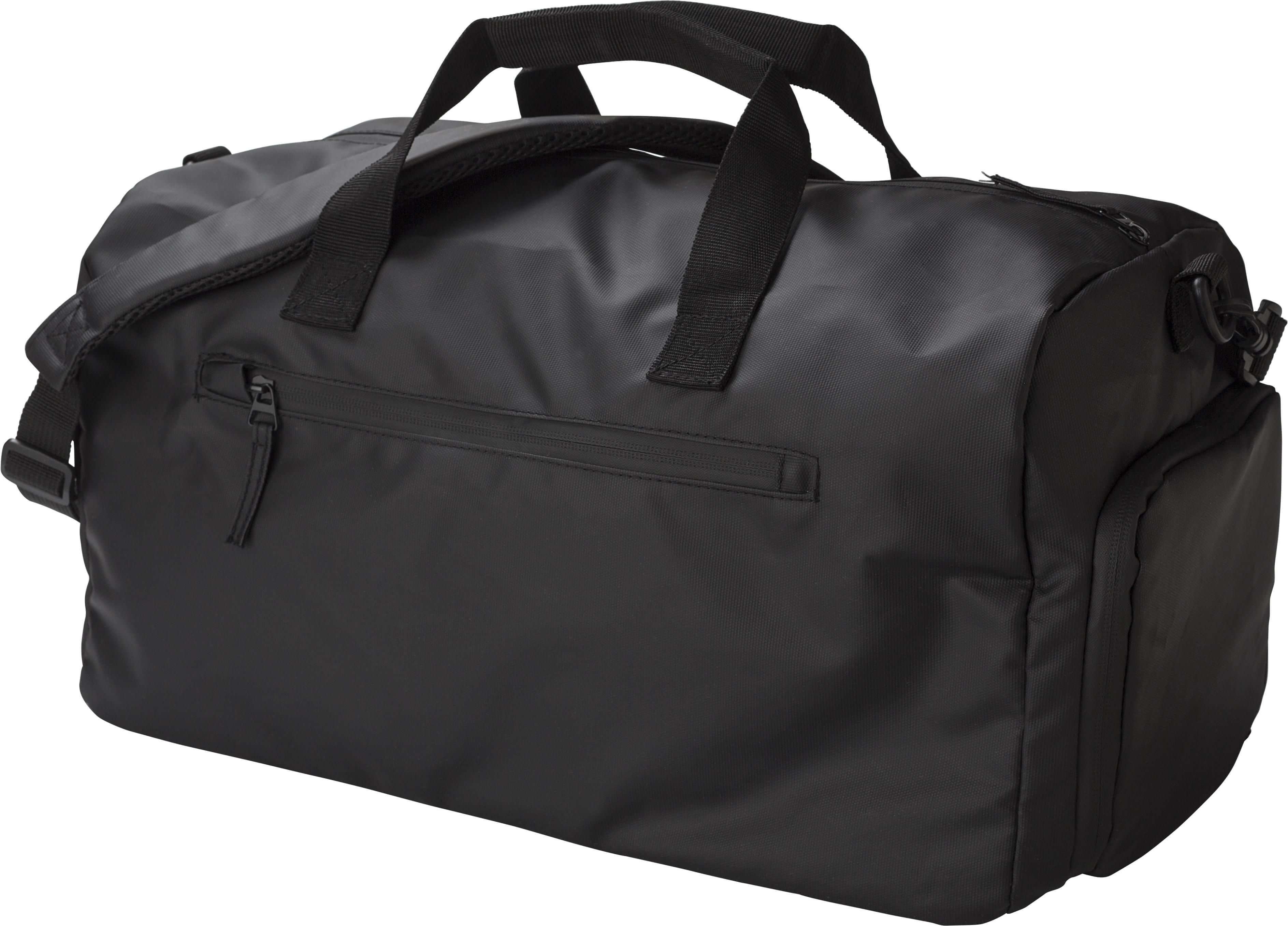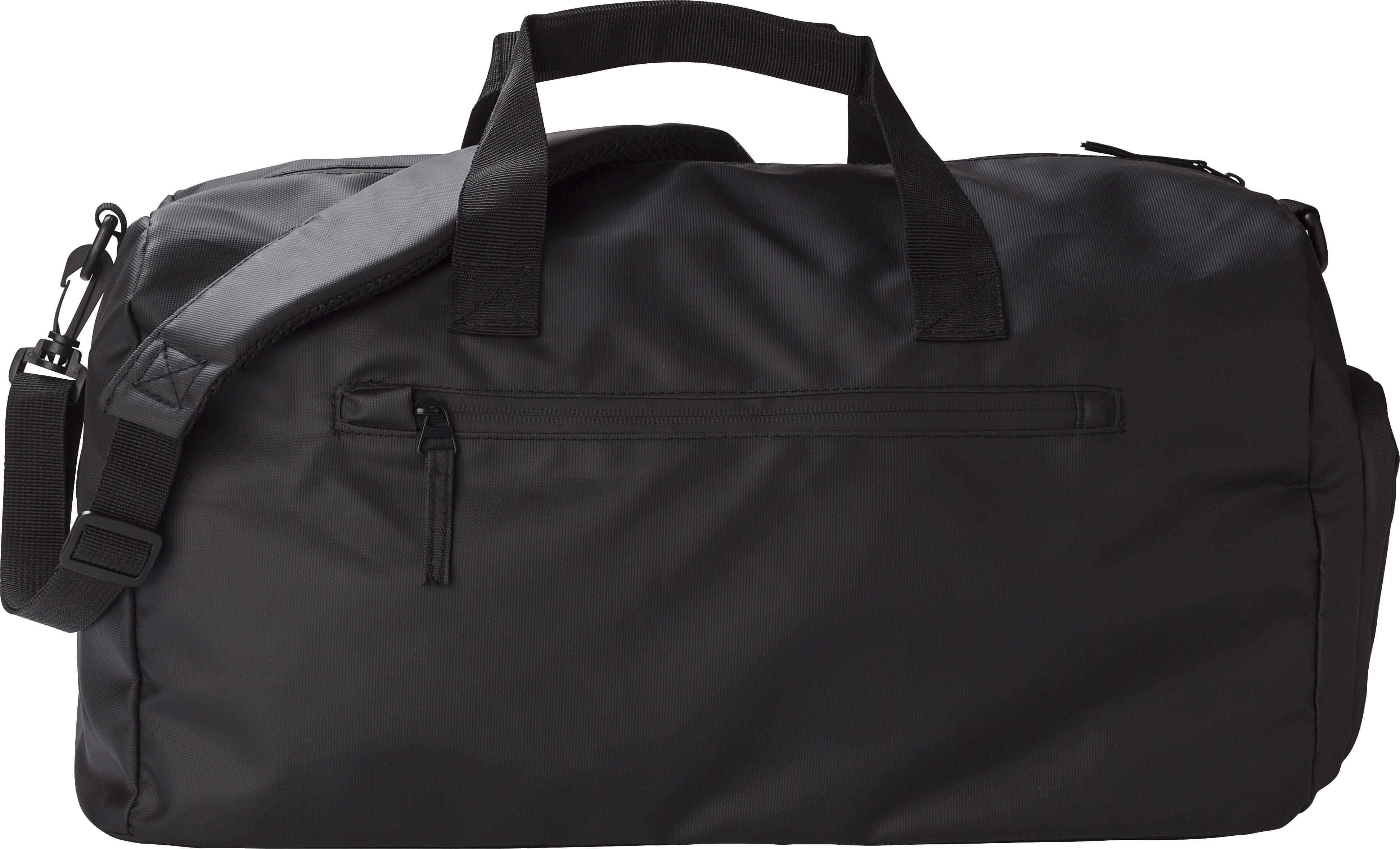 Saco de lona em poliéster (600D). Poliéster 210D no fecho de correr, revestido com poliéster 600D. Repelente de água, fecho de correr incluído. Alças ajustáveis e pegas curtas. Com vários compartimentos, compartimento para sapatos na parte lateral. Fundo reforçado.
