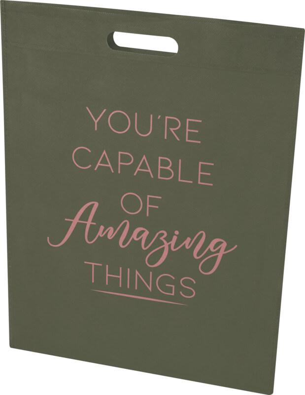 Feito de RPET durável e resistente a rasgões, o saco reciclado com certificação GRS “EcoSeal” possui uma construção selada a quente por ultrassom e alças cortadas, e é leve, forte e sem costuras. Perfeito para artigos essenciais do dia a dia, eventos ou tarefas rápidas. Resistência até 3 kg de peso. Capacidade volumétrica: 5 litros.