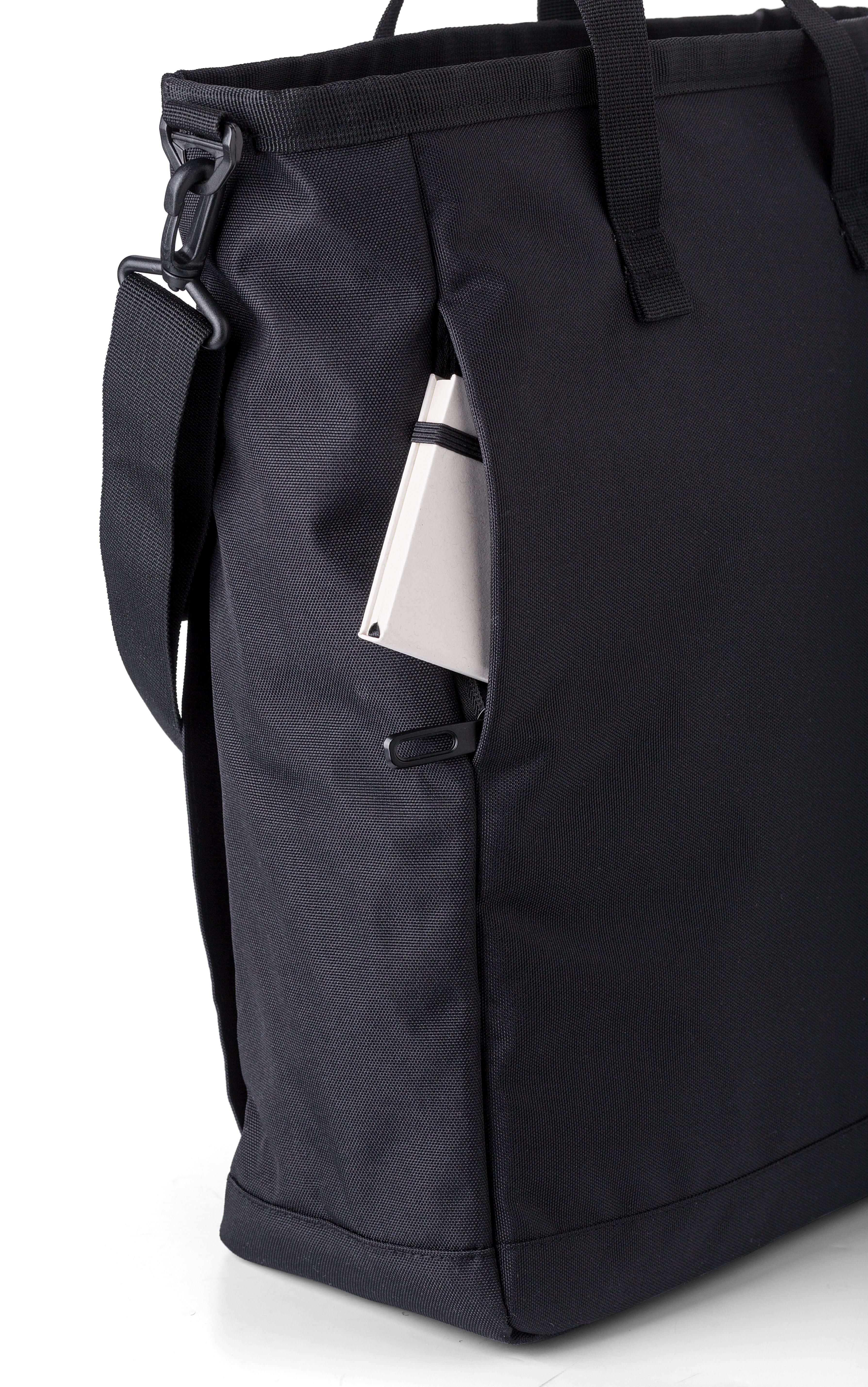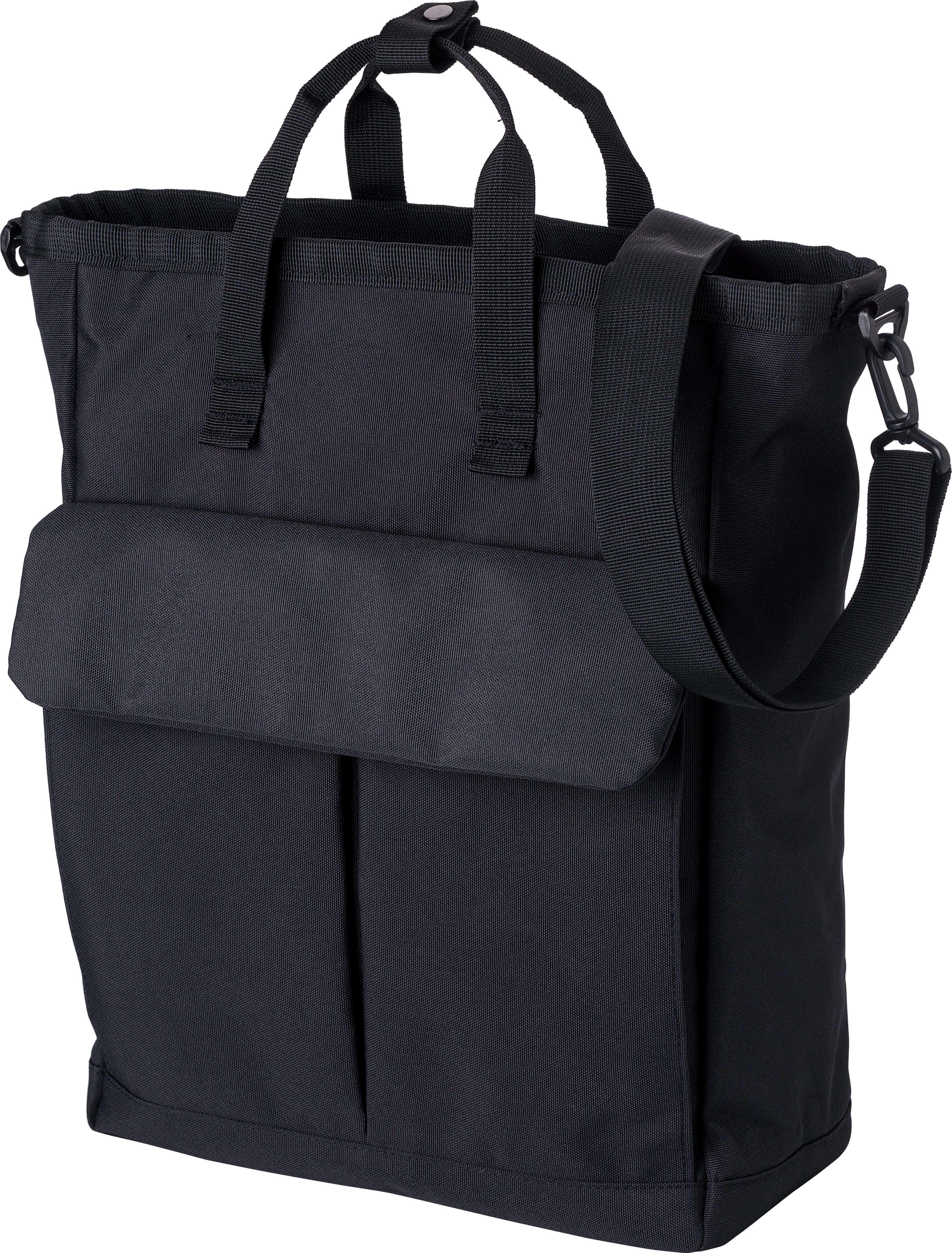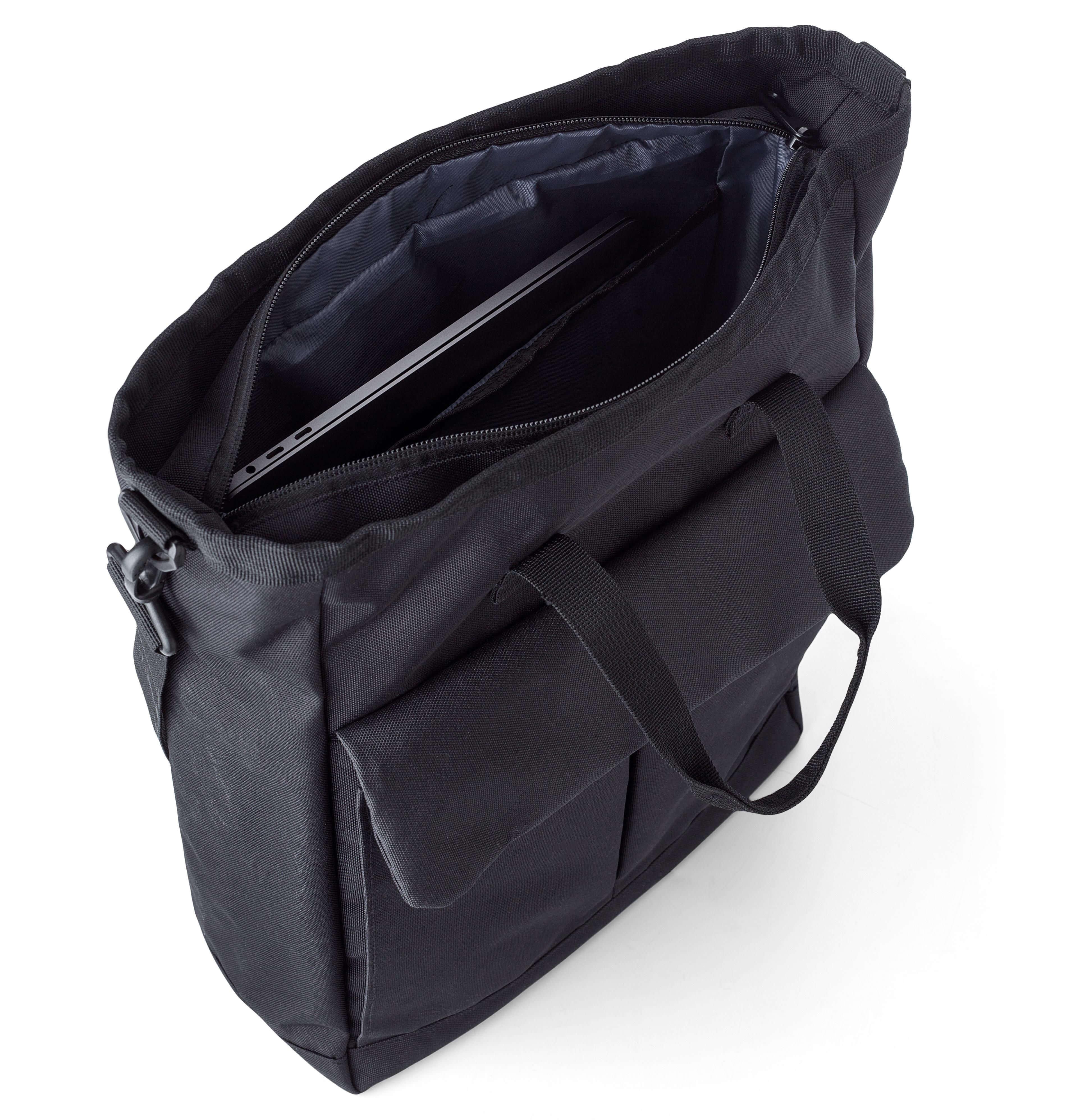 Saco de tiracolo em poliéster (900D). Dois bolsos com fecho de velcro na frente, um compartimento grande com fecho de correr na parte superior e um compartimento com fecho de correr na parte de trás. Vários compartimentos no interior, incluindo um compartimento para computador portátil (15’’). Alças de ombro ajustáveis e pegas curtas.