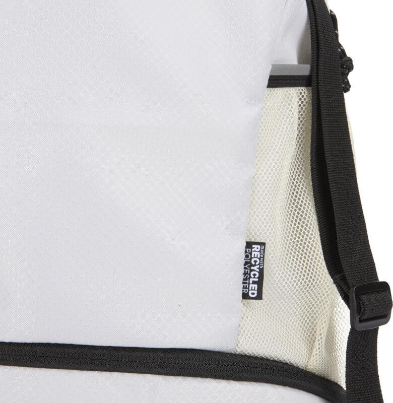O saco desportivo com cordão “Nomad” é feito de tecido ripstop reciclado com certificação GRS com um acabamento impermeável, revestimento RPET com certificação GRS e elementos refletores. Foi concebido para pessoas com um estilo de vida ativo e é adequado para exercícios diários e atividades desportivas. O saco possui um compartimento principal espaçoso que pode guardar roupas, uma toalha ou até mesmo uma bola de basquete. Um compartimento inferior separado serve para guardar sapatos ou roupas usadas separados de outros artigos. Também inclui dois bolsos laterais de malha com detalhes refletores, um bolso oculto com fecho de correr para objetos de valor e alças de ombro ajustáveis para um transporte confortável.