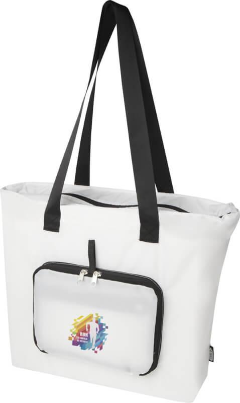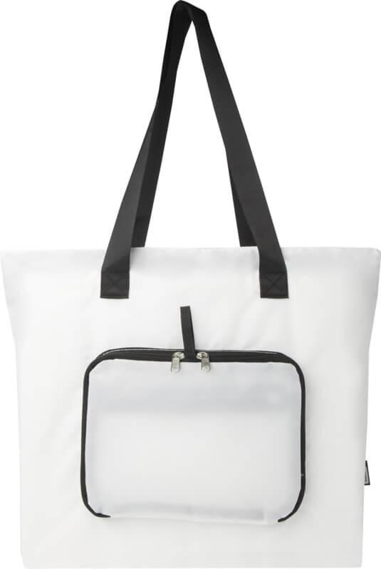 Concebido para ser prático e conveniente, este saco leve e durável adapta-se às suas necessidades com a possibilidade de o dobrar perfeitamente numa bolsa compacta com uma alça de correia para pendurar ou transportar facilmente, tornando-o perfeito para dias atarefados, idas às compras espontâneas ou como um saco de reserva. Inclui um compartimento principal espaçoso com fecho de correr, um bolso frontal com fecho de correr e duas alças longas feitas de material de tecelagem de qualidade e suave. Feito de poliéster reciclado sem PVC. Capacidade volumétrica: 16 litros.