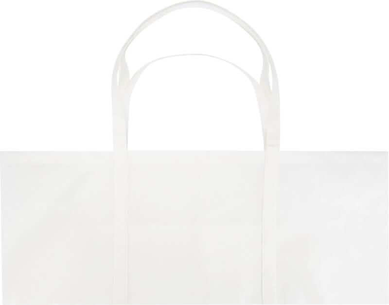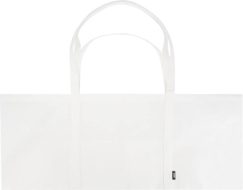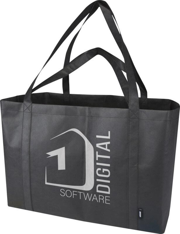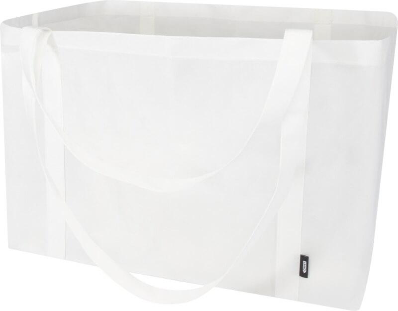 Feito de RPET não tecido, durável e resistente a rasgos, o saco “Jumbo” reciclado com certificação GRS oferece uma capacidade extragrande de até 65 litros para diversas atividades, como fazer compras de supermercado em grandes quantidades ou um dia na praia ou no parque. Possui alças curtas reforçadas (24 cm) e alças longas (37 cm) para um conforto máximo ao transportá-lo. Fácil de dobrar e guardar quando não estiver em uso. Resistência até 15 kg de peso.