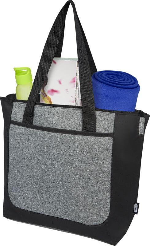 A sacola de dois tons com fecho reciclada “Reclaim” GRS é feita de materiais 100% reciclados GRS no exterior e possui um bolso frontal e um compartimento principal com fecho. Uma ótima alternativa sustentável aos sacos de plástico. O comprimento da alça é de 25 cm.