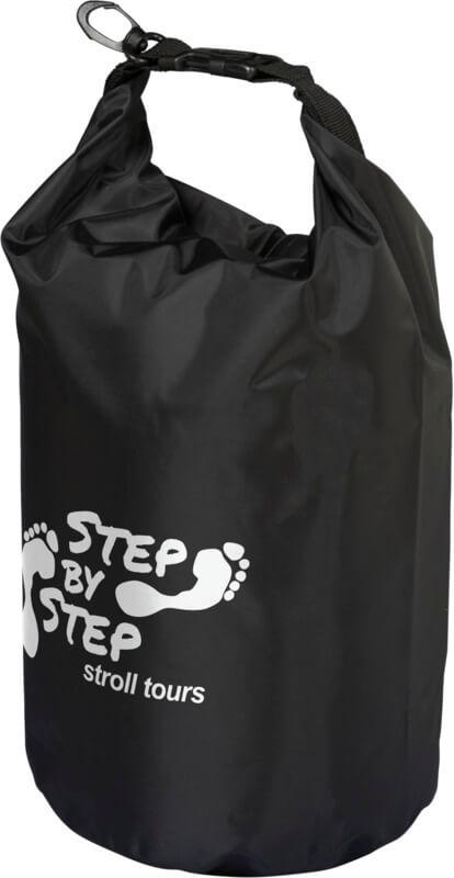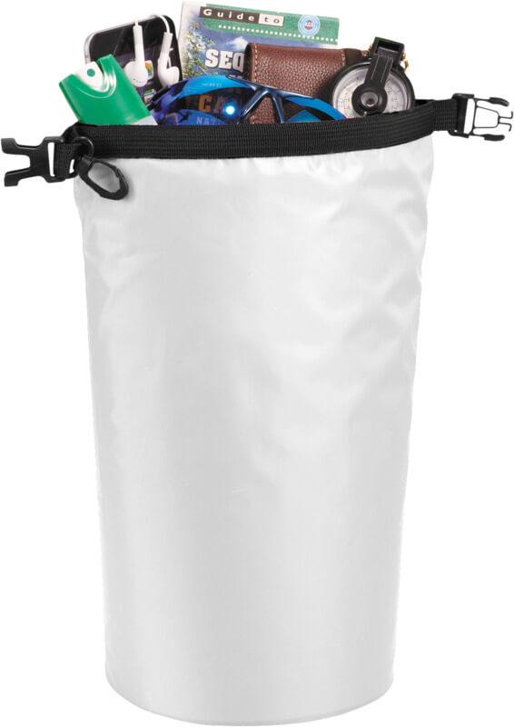 Um saco impermeável excelente para o exterior. O fecho enrolável com fivela de plástico garante que os seus pertences de valor se mantenham secos e seguros. Pode-se facilmente prender a um saco ou a um cinto. Ao desdobrar e apertar, tem uma capacidade de 10 litros.