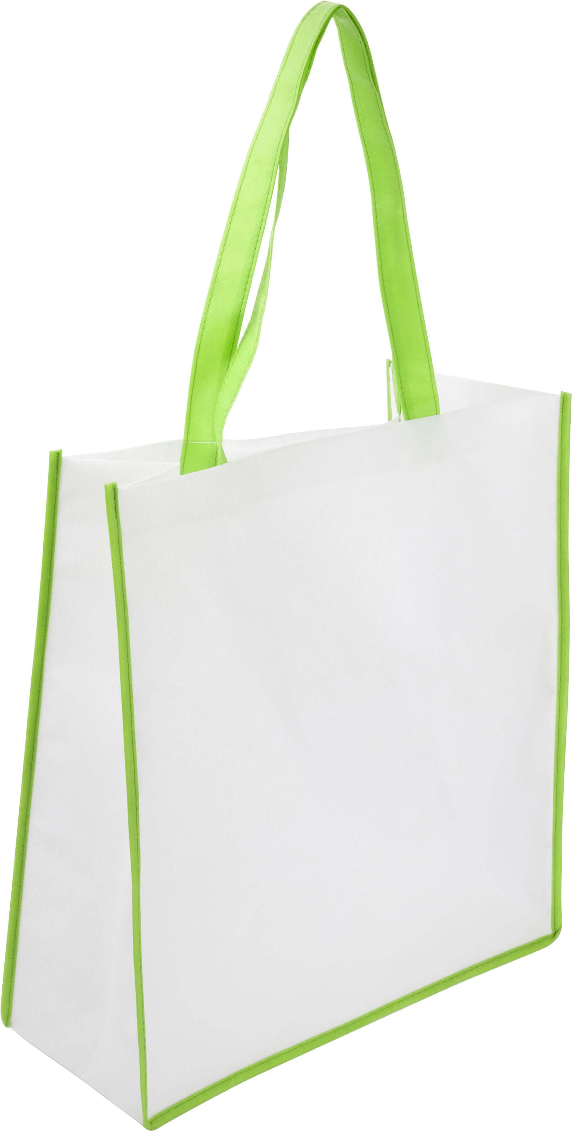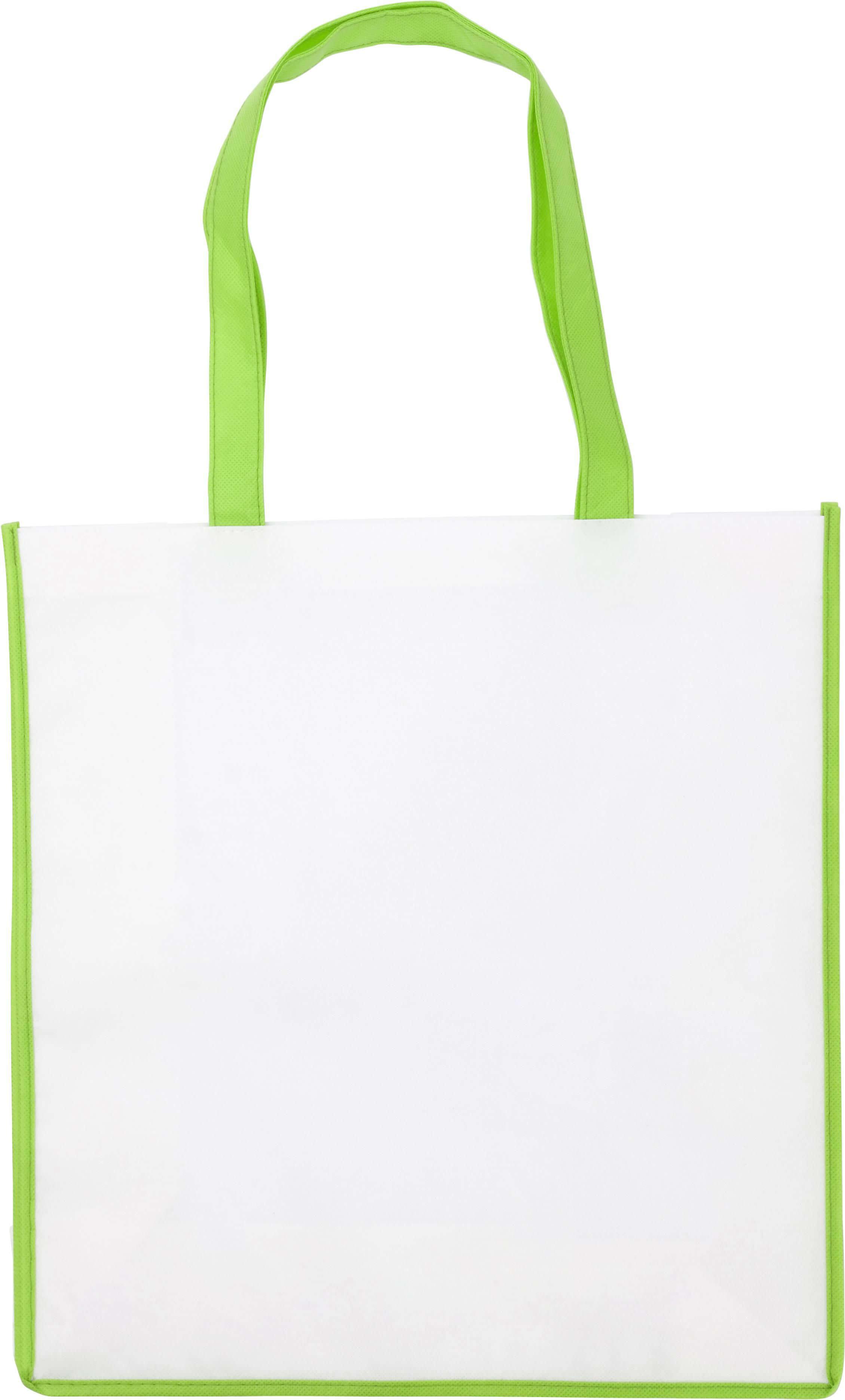Saco non-woven 80 gr/m2 com acabamentos coloridos e alças compridas a condizer.