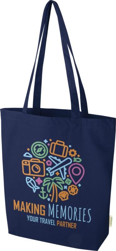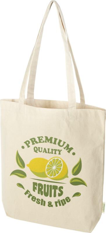 Feito de 100 % de algodão orgânico de 270 g/m², o saco “Orissa” com fundo largo e alças longas garante uma escolha mais responsável e durável para as suas necessidades diárias. Com o seu design de fundo largo, o saco oferece espaço adicional para os seus bens essenciais em qualquer ocasião, desde compras até passeios casuais. Capacidade volumétrica: 10 litros.