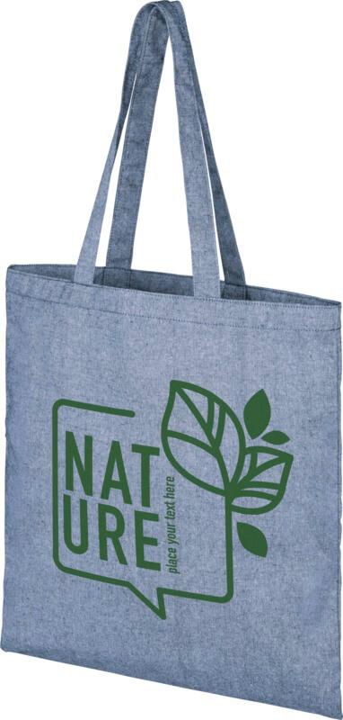 Saco tote de algodão reciclado de 210 g/m² com mistura de algodão e polyester O algodão reciclado é produzido a partir de resíduos pré-consumo gerados pelas fábricas têxteis durante o processo de corte. Esta sacola dobra-se facilmente para caber num espaço pequeno. O companheiro perfeito para uma variedade de atividades, como compras de mercearia, passeios diários ou projetos artesanais. Pode haver pequenas variações na cor do produto real devido à natureza do processo de produção. Esta característica contribui claramente para uma aparência mais autêntica. Comprimento do cabo suspenso de 31 cm. Pode haver pequenas variações na cor do produto real devido à natureza do processo de produção.Pode haver pequenas variações na cor do produto real devido à natureza do processo de produção.