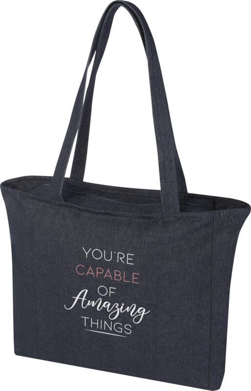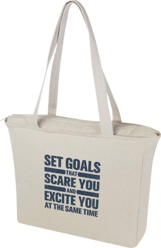 Com a sua grande capacidade, o saco reciclado “Weekender” é perfeito para levar numa viagem curta. O saco possui um fecho de correr em todo o comprimento, garantindo que quaisquer objetos permaneçam protegidos no interior. O compartimento principal contém também um pequeno bolso com fecho de correr para guardar objetos menores. O saco incorpora fibras recicladas “Cyclo®” onde são usados resíduos pré-separados que determinam a cor do fio. Estas fibras não só reduzem a procura por recursos virgens, mas também demonstram um compromisso com uma vida circular, incorporando a essência da redução de resíduos e da promoção de um sistema de circuito fechado. Cada saco também vem com um rastreador “Aware™”. Esta funcionalidade inovadora permite aos utilizadores rastrear as origens e o percurso do seu artigo através de um código QR, aumentando a transparência na cadeia de abastecimento e promovendo uma ligação mais forte entre o produto e o seu processo de produção.