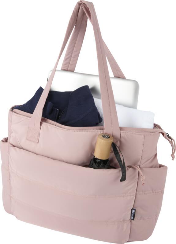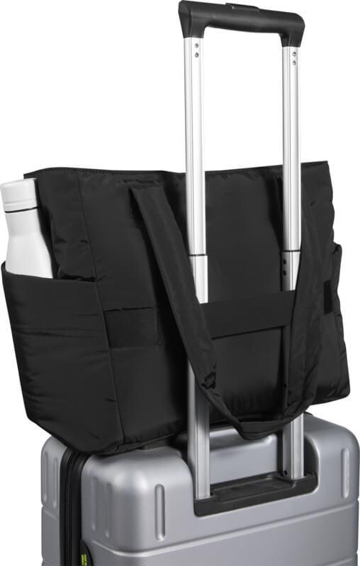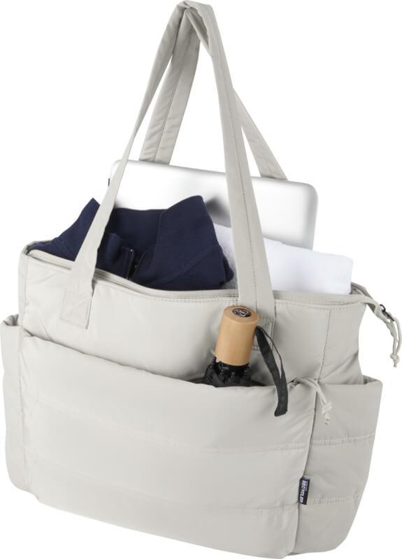 O saco para portátil “Puffer” de 15,6 polegadas combina materiais reciclados com certificação GRS com um design inteligente e moderno. Com uma capacidade de 18 litros, inclui um compartimento acolchoado para portáteis até 15,6 polegadas e vários bolsos internos e externos para guardar cadernos, carregadores, garrafas de água e outros artigos essenciais. As pegas longas acolchoadas e uma alça de trólei garantem um transporte confortável, e o acolchoamento de estilo puffer oferece proteção e um visual elegante. Leve e resistente à água, este saco é a escolha ideal para profissionais e estudantes que se deslocam frequentemente.