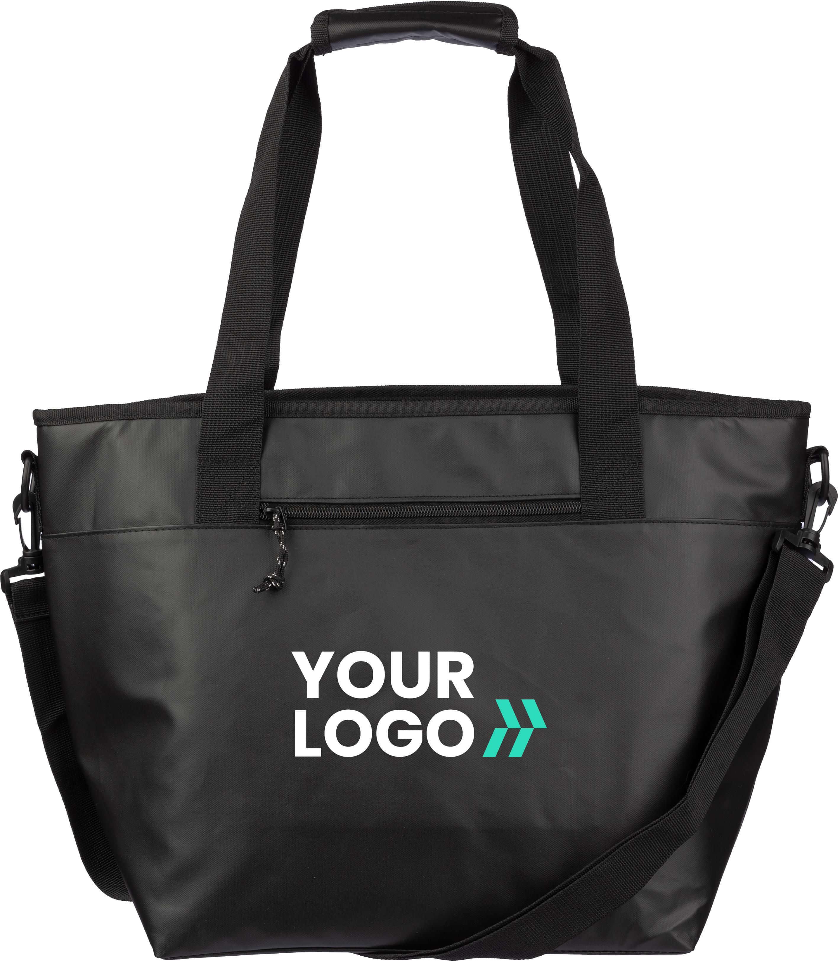 Saco térmico revestido a poliéster (600D) + TPE com interior em PEVA/15C. O saco inclui espuma PE de 6 mm e um interior impermeável. Duas pegas de transporte com fecho de velcro e alça de ombro ajustável. Bolso com fecho de correr na parte da frente