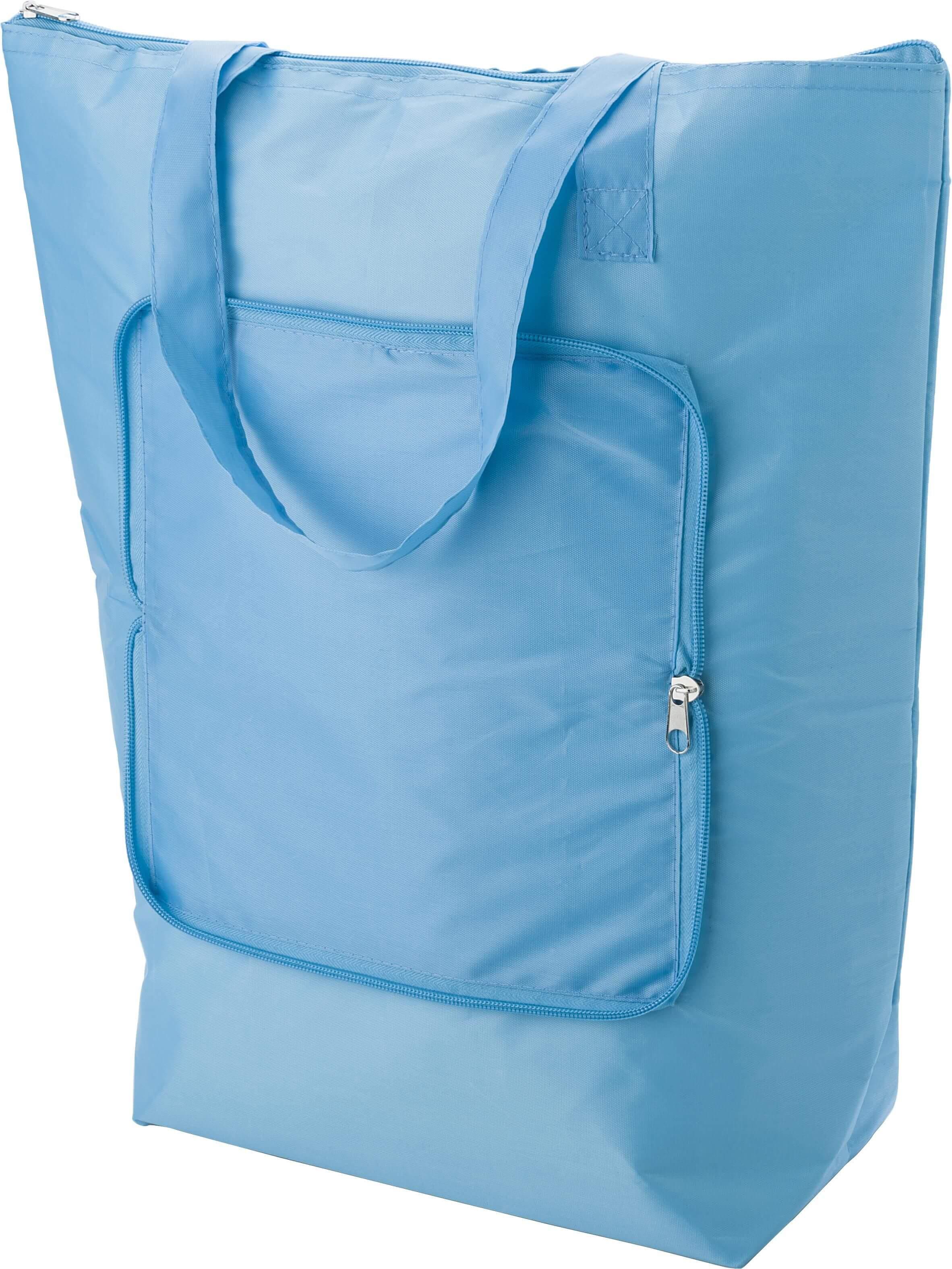 Saco térmico em poliéster (210T), dobrável com folha de alumínio no interior. Capacidade: 13 litros.