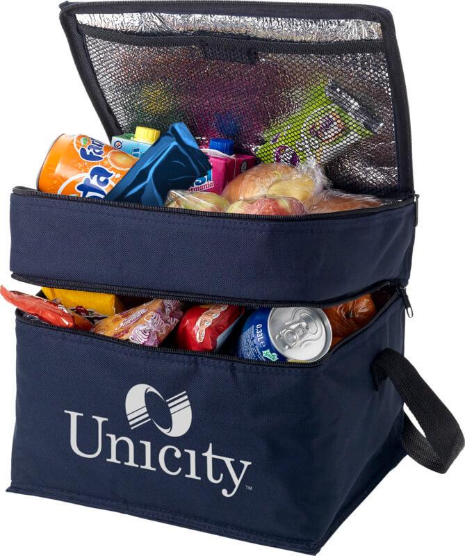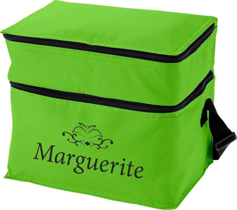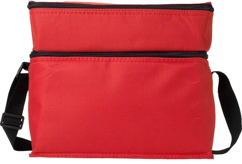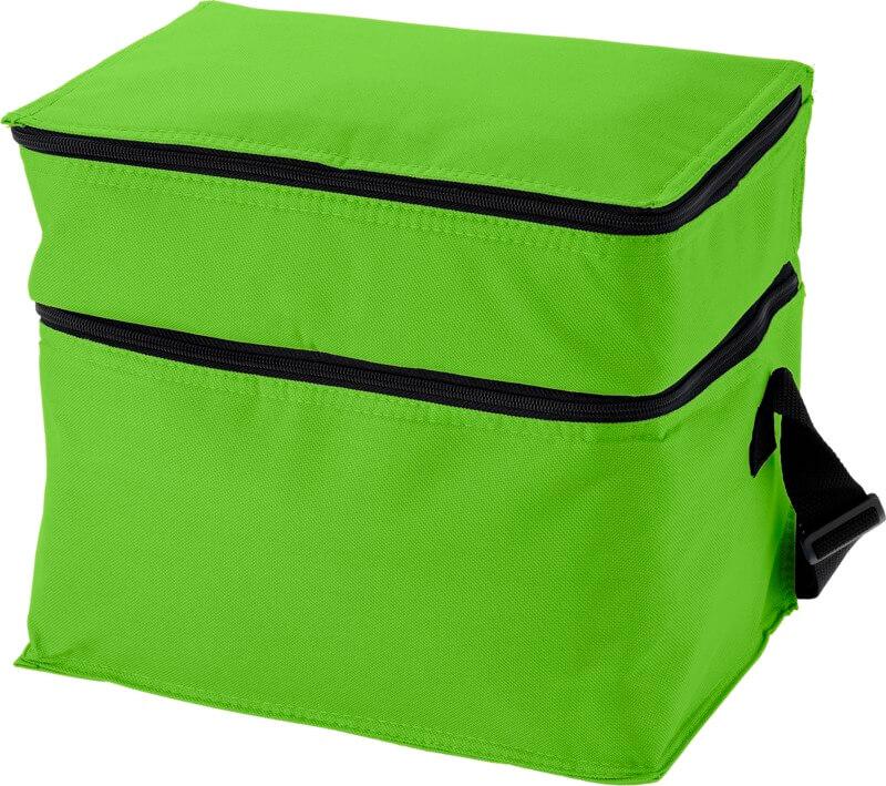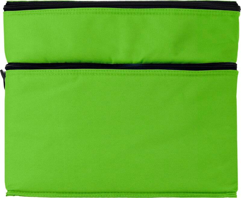 Esteja seguro com bebidas refrigeradas e snacks em qualquer altura e em qualquer lugar com o saco Oslo. O saco tem dois compartimentos separados com fecho de correr. A parte superior é perfeita para armazenar pequenos snacks, e a parte inferior é ideal para mercearias maiores. A alça de ombro é ajustável, pelo que o saco é fácil de transportar por todos. O saco mais fresco consiste em 600D de poliéster, um tecido resistente e durável.